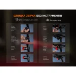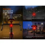 Велофара Fenix ​​BC06R, зарядный кабель USB Type-C, крепление к дугам седла и подседельного штыря, монтажный ремень, стяжки, инструкция пользователя, гарантийный талон.
