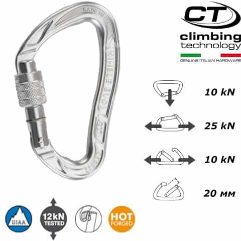 Сертификат безопасности: EN 12275:1998-B, EN 362:2004-B, CE 0333, UIAA