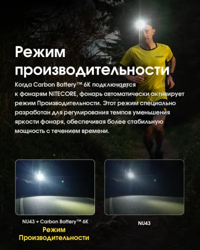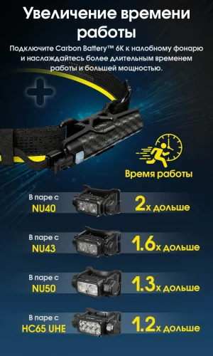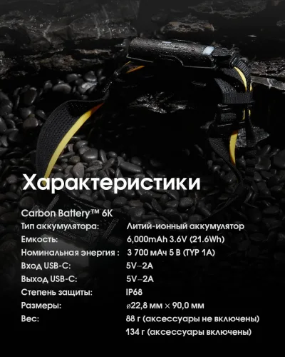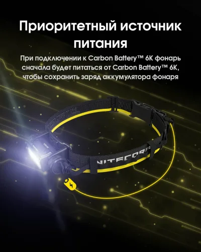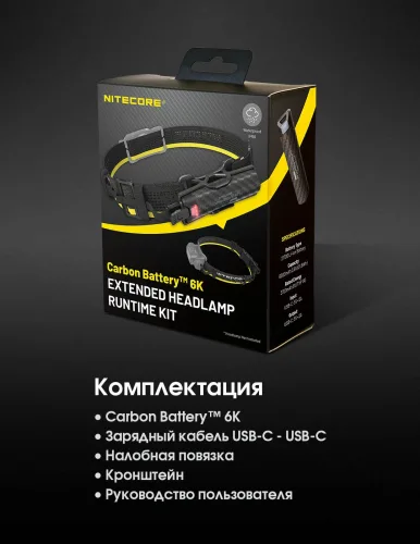 2в1 Внешний источник питания для налобных фонарей + Power Bank Nitecore Carbon Battery™ 6K Kit (Карбон, красный маяк, 6000mAh, IP68), комплект