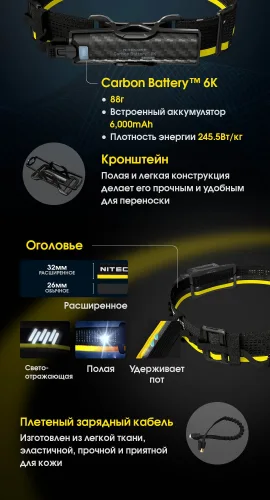 - Комплектация: Power Bank, налобная повязка, кабель для зарядки, кронштейн, фирменная упаковка