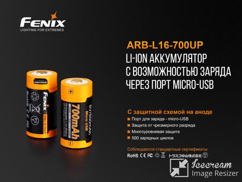 - аккумулятор Fenix ARB-L16-700UP имеет современные механизмы защиты от перезаряда, переразряда, обратной полярности и перегрева;