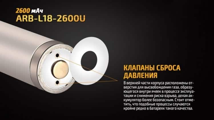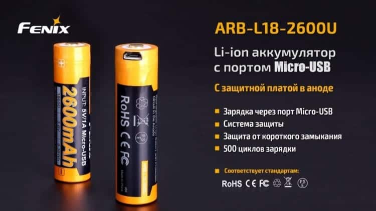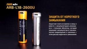 Аккумулятор 18650 Fenix ARB-L18-2600U (2600 mAh)