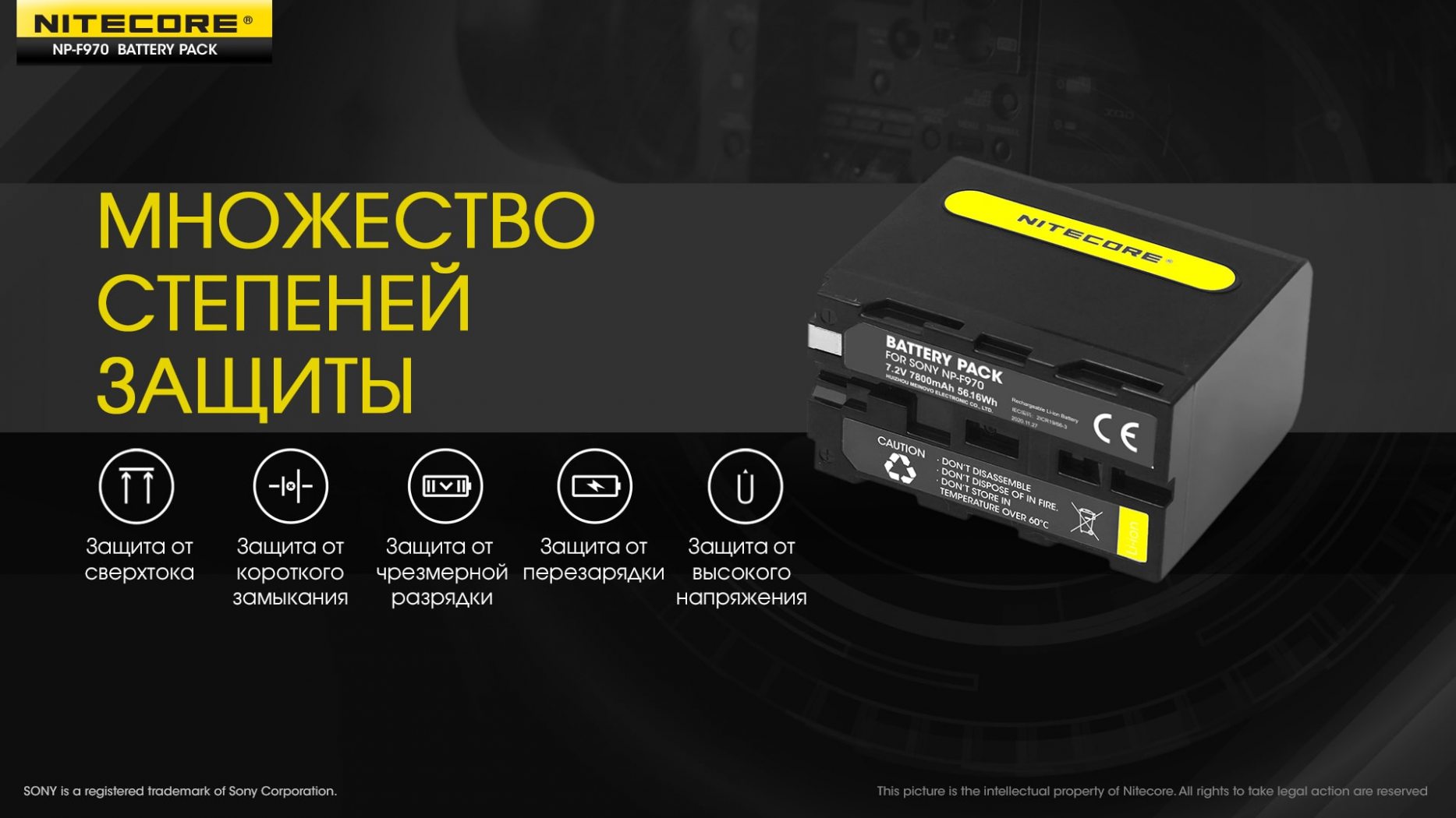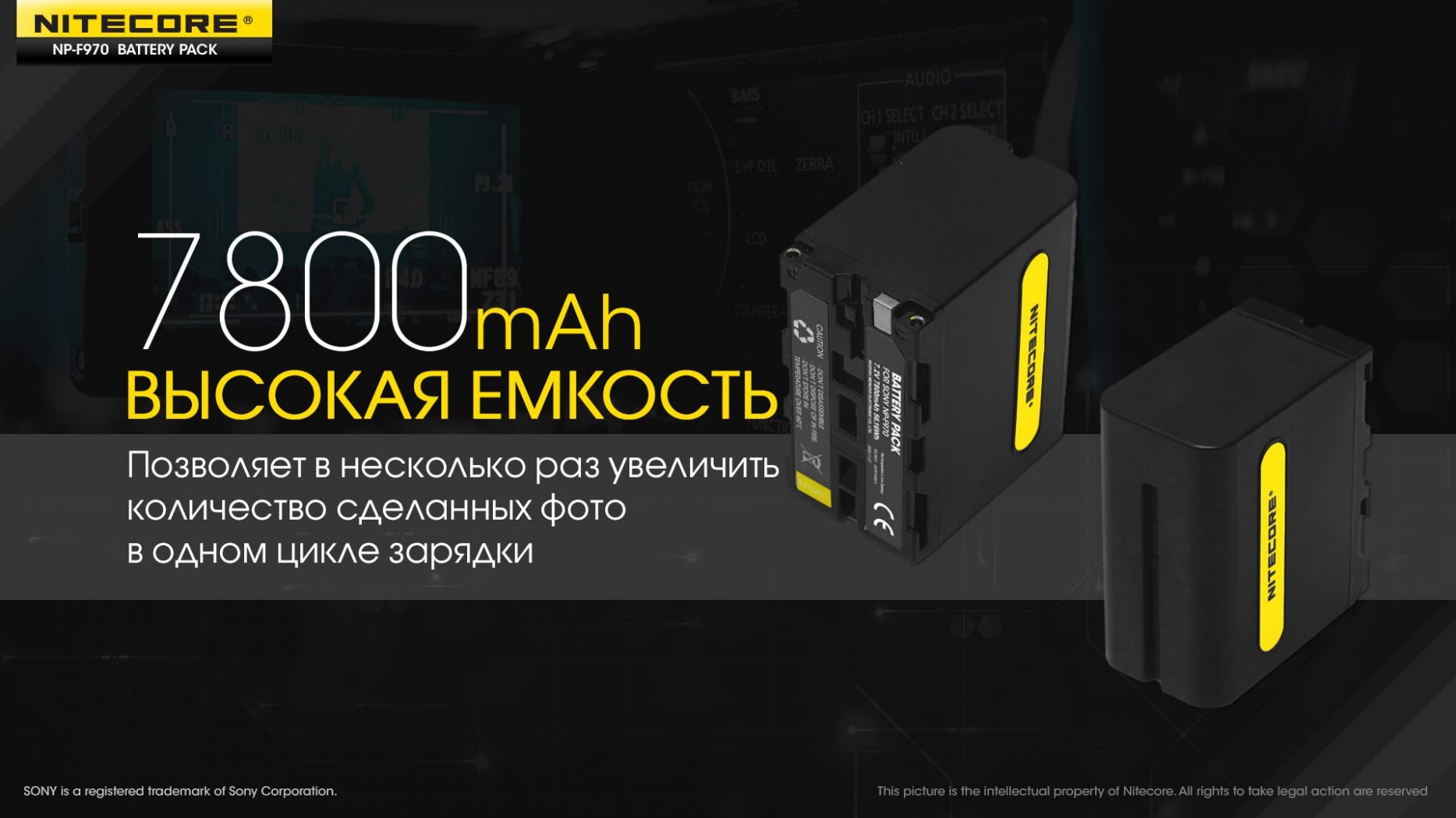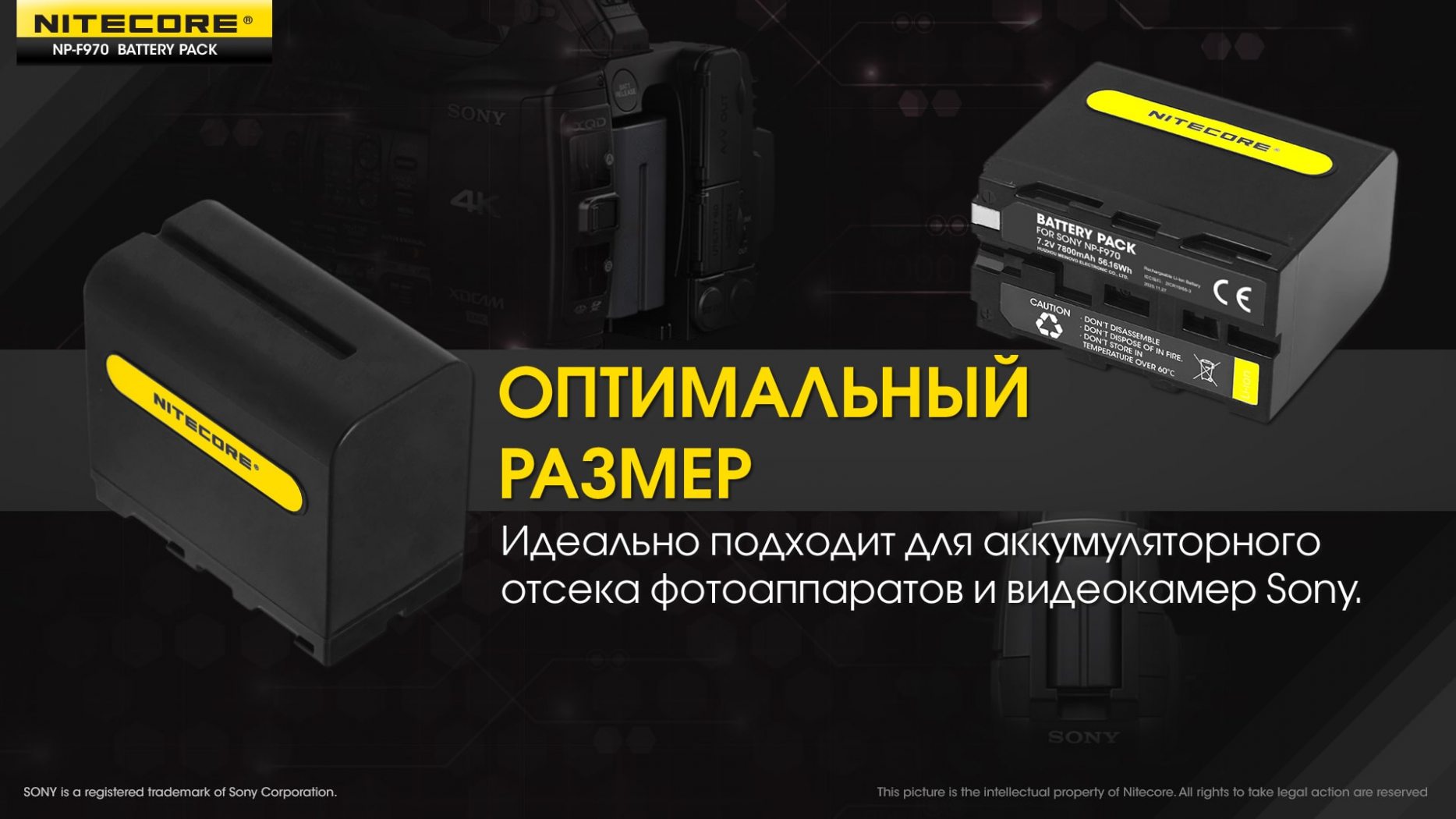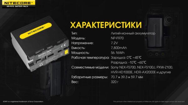 Аккумулятор Li-Ion Nitecore NP-F970 для камер Sony NEX-FS700, NEX-FS100J, PXW-Z100 (7800mAh)