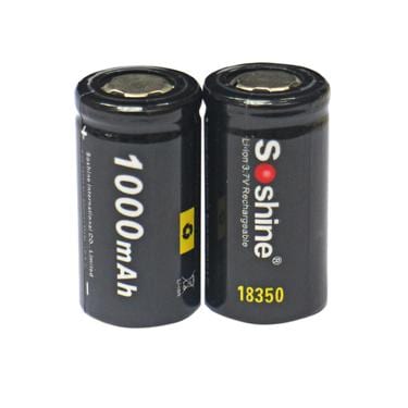 Высококачественный Li-ion аккумулятор Soshine емкостью 1000мАч и типоразмером 18350. При должном использовании аккумулятор прослужет 500 — 1000 перезарядов. Типоразмер 18350 широко применяется в качестве аккумулятора для электроинструментов и мощных светодиодных фонарей.