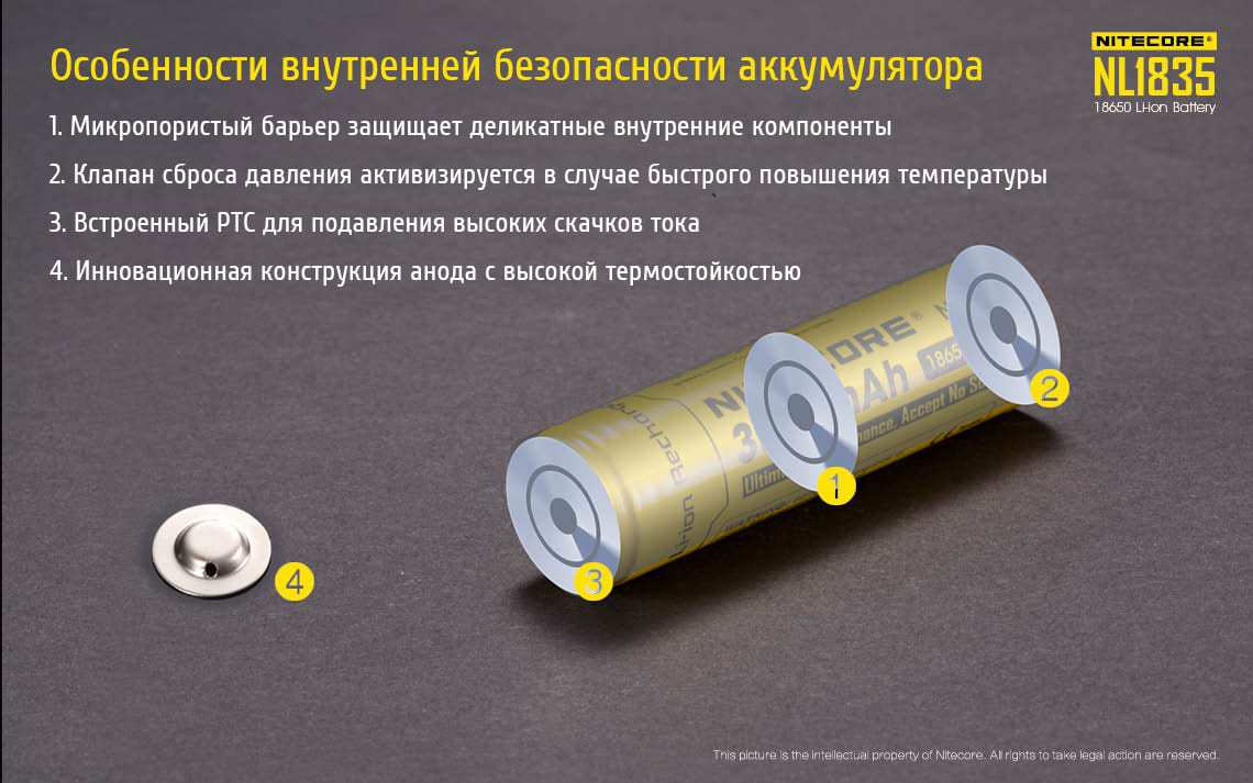 Основные особенности и инновации аккумулятора Nitecore NL1835 18650 (3500mAh):
