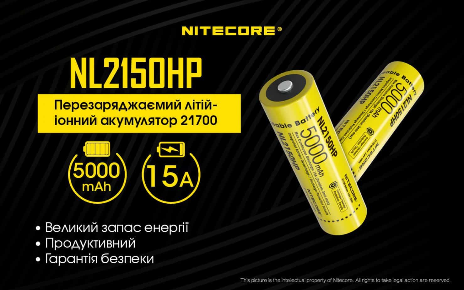 Аккумулятор литиевый Li-Ion 21700 Nitecore NL2150HP 3.6V (5000mAh), защищенный