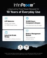 Благодаря нашей фирменной долговечной технологии InfiniPower™ в сочетании с аккумуляторами LiFePO4, сверхпрочными электронными компонентами, интеллектуальной системой контроля температуры, которая контролирует температуру до 100 раз в секунду, и благодаря ударопрочной структуре аккумулятор Anker Expansion Battery BP2600.
