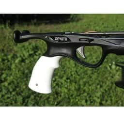 Классическое ружье для подводной охоты арбалетного типа Devoto Sub Rebel Gun 75. Ничего лишнего, только утонченный итальянский дизайн, умноженный на функциональность. Баррель ровный, цилиндрический, изготовлен из облегченного сплава, оборудован направляющей гарпуна. Голова открытого типа позволяет установить две кольцевые тяги диаметром до 20 мм. Скоба, защищающая спусковой крючок достаточно широкая и позволят орудовать ружьем даже в самых плотных рукавицах. Ползунковый предохранитель расположен по бокам от металлической фиксирующей пластины. Такая конструкция предохранителя позволяет удобно работать с Devoto Sub Rebel Gun 75 как левше, так и правше. Чувствительность спускового крючка настраивается отдельным регулятором. Реверсивная система курка позволила не меняя длинны ружья увеличить рабочую длину на 7.5 сантиметров. Пластиковая эргономическая рукоятка белого цвета очень удобно лежит в руке и помогает обнаружить ружье, если оно каким-то образом осталось на дне. В конструкции предусмотрен крепеж для катушки.