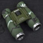 Функциональный бинокль зеленого цвета от производителя Bushnell, обладает зумом 12х, послужит идеальным вариантом для охоты, рыбалки, туризма. В комплект входит чехол из нейлоновой ткани и салфетка. Представленный бинокль отлично подойдет и для профессионалов и для любителей понаблюдать за природой и спортивными мероприятиями. Камуфляжная расцветка бинокля делает его внешний вид особенно привлекательным и уникальным. Он компакный, удобный, практичный, не займет много места в рюкзаке или сумке, Вы прекрасно сможете брать его с собой куда бы Вы не отправились. Не смотря на свою компактность, бинокль имеет достаточно большую кратность увеличения — 12. Так же стоит заметить, что лизны выполнены по типу призм Порра. Обрезиненный корпус, стекло высокого качества, компактные габаритные размеры — все как нельзя лучше располагает к выбору именно этой модели. Идеально подойдет для охоты. рыбалки, походов на природу, туристических путешествий или в любой момент, когда нужно увидеть четкую и яркую картинку. Бинокль устойчив к ударам, царапинам благодаря качественному материалу корпуса. После каждого использования рекомендуется протереть окуляры и и объективы специальной салфеткой, которая входит в комплект.