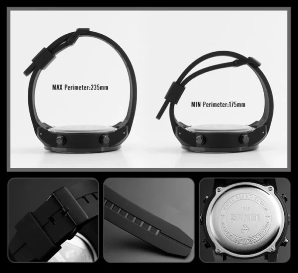 В часах от Skmei модели 1355 уместилось много полезных функций и внушительный дизайн. Такие не остануться незамеченными. Потому что как же не посмотреть, на какие часовые пояса запрограммированы ваши часы. Если коротко, главные преимущества модели выглядят так: