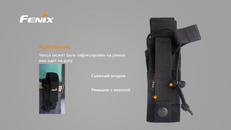 Бренд Fenix представляет еще одну модификацию универсального чехла — ALT-MP. Он предназначен для защиты и хранения разных моделей фирменных фонарей, а также многофункциональных инструментов и ножей. Благодаря регулируемой по высоте застежке на липучке, чехол прекрасно подходит для инструментов разного размера. Так, Головной частью вниз в него поместятся фонари Fenix из серии ТК: ТК09, ТК15, ТК15С. Головной частью вверх в чехле может разместиться фонарь SD10. Некоторые модели одинаково хорошо помещаются в любом положении. Это фонари Fenix PD32, PD35, LD12, LD22, E20, E25, E35 E35UE, UC30, UC40, UC40UE.