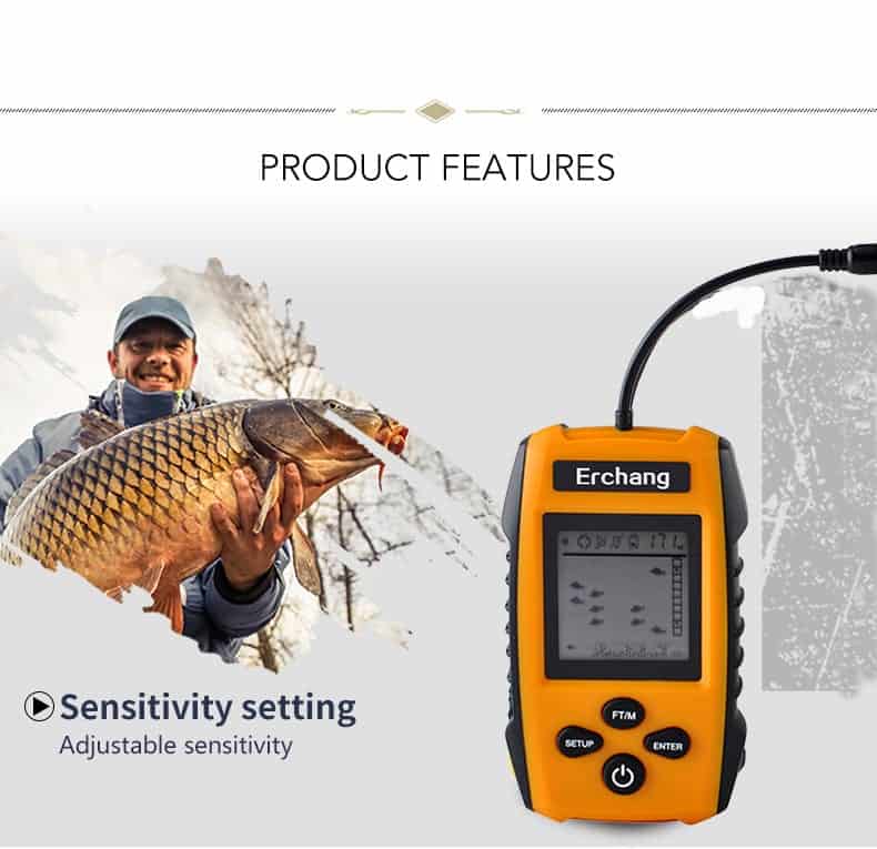 Описание товара: Эхолот рыбопоисковый необходим как опытному рыболову, так и новичку. С помощью этого прибора можно обнаружить места скопления рыбы и обеспечить себе удачный улов. Эхолот рыбопоисковый Fish Finder FF1108/TL88 предназначен для использования с неподвижных или малоподвижных оснований, его можно использовать как летом с лодки, так для зимней рыбной ловли. Датчик эхолота помещен в водонепроницаемый корпус, существует возможность регулирования мощности сигнала датчика и чувствительности сонара. Зеленая подсветка экрана обеспечивает видимость в плохих условиях. Это устройство работает в интервале температур от -20 C, до +70 C (-4 F на 158 F). С этим гидролокатором Вам не нужно будет много времени, чтобы обнаружить рыбу (или ее отсутствие) в конкретном месте. На экране 2″ LCD монитора можно увидеть практически всех присутствующих морских (речных) обитателей, и не тратить зря ваше время. Эхолот Fish Finder fd01wr ( ff1108-1) — этот тип портативного эхолота Fishfinder является наиболее бюджетным. Оптимально подходит для рыбной ловли с лодки и для зимней рыбалки. Конструкция эхолота Fish Finder fd01wr ( ff1108-1 ) представляет собой небольшой 12 сантиметровый блок с 7,5 метровым проводом. Эхолот Fish Finder FD01WR (ff1108-1) отлично вмещается в руку и в карман куртки, что делает его использование комфортным если сравнить с громоздкими навигационными эхолотами. Экран портативного эхолота Fish Finder FD01WR ( ff1108-1 ) схематически выглядит как на рисунке: