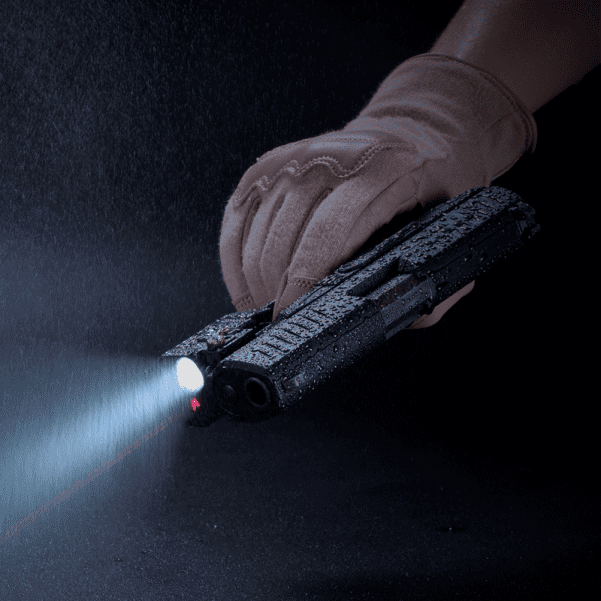 Хорошим дополнением к фонарю, и очень полезный прибор — это лазер. Лазер устанавливается для того, чтобы помочь пользователю быстрее определить цель на расстоянии при этом обозначая её красной точкой. Максимальная мощность лазера имеет длину волны в 635nm, что в результате будет ставит цель на большом расстоянии.
