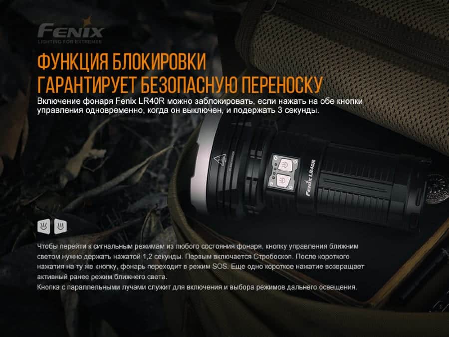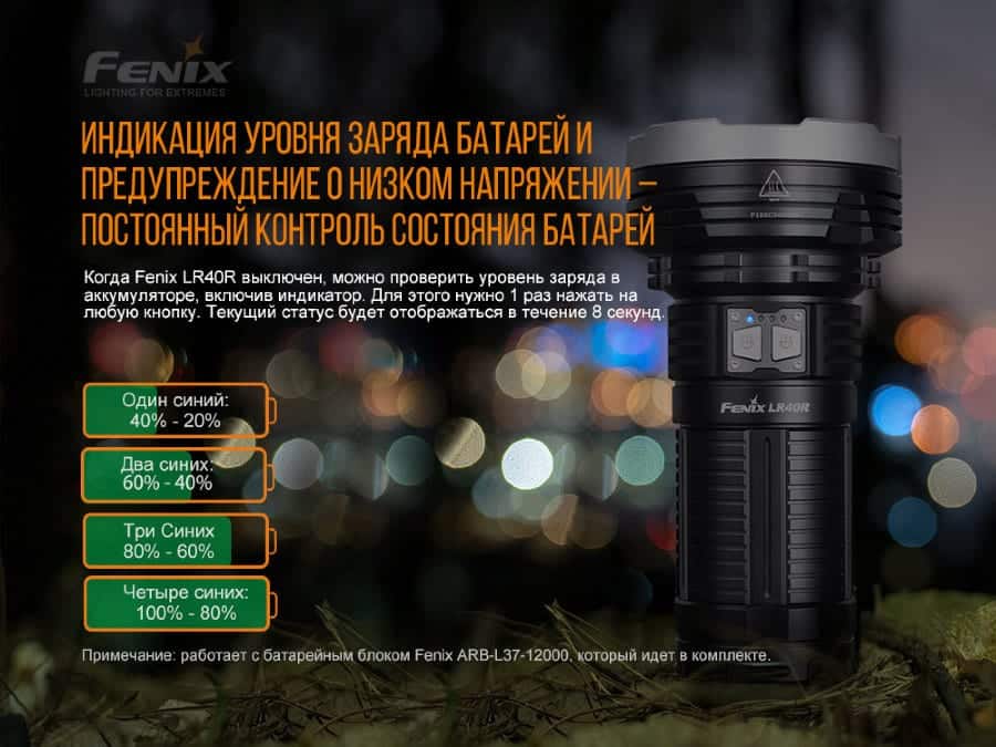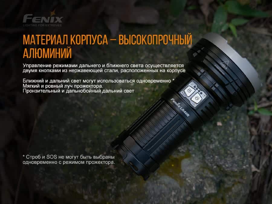 Гарантия: Поисковые фонари Fenix LR40R продаются с фирменной гарантией на 5 лет.