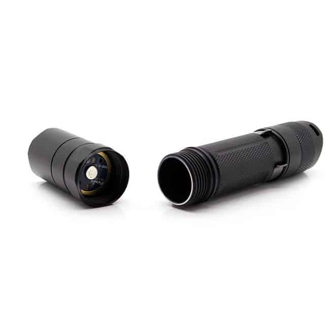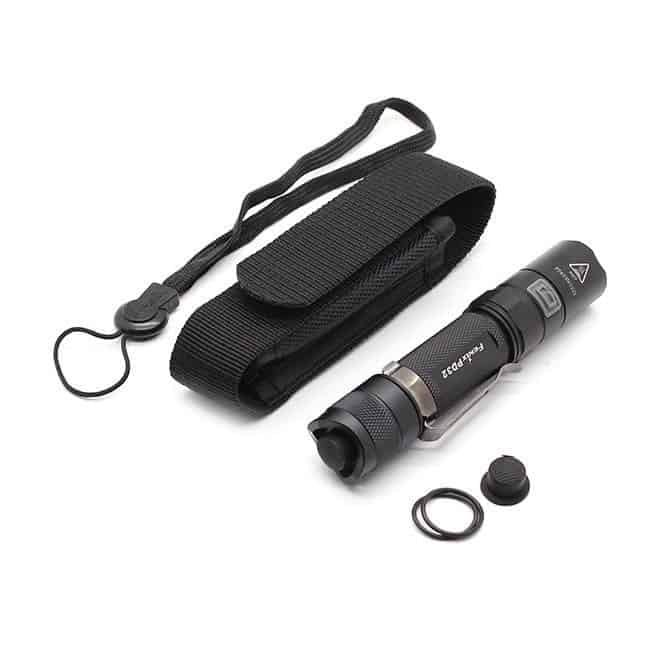 Питание фонаря осуществляется от двух элементов питания CR123A (Lithium). Корпус фонаря выполнен из авиационного алюминия, который имеет тройное анодированное покрытие повышенной прочности. Корпус имеет степень влагозащищенности IPX-8 и выдерживает длительное погружение в воду на глубину до 2 метров. Также фонарь имеет закаленное стекло с просветляющим покрытием. В комплект входят дополнительные уплотнительные кольца.