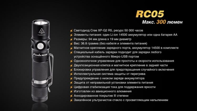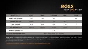Гарантия: Покупатели фонарей Fenix RC05 могут воспользоваться гарантией на них в течение пяти лет после приобретения.