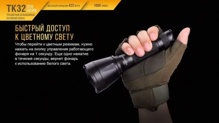 Фонарь TK32 2016 представляет собою усовершенствованную версию тактической модели. Он особенно понравится охотникам, поскольку, при наличии соответствующих креплений, может выполнять роль подствольного фонаря. В этом случае, полезной также будет тактическая кнопка Fenix с двумя контактными площадками, которая в состоянии полноценно управлять работой данной модели фонаря. Продается она отдельно.