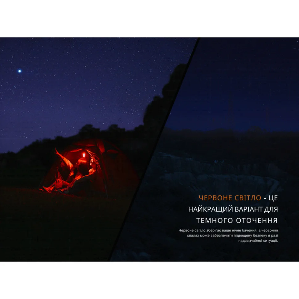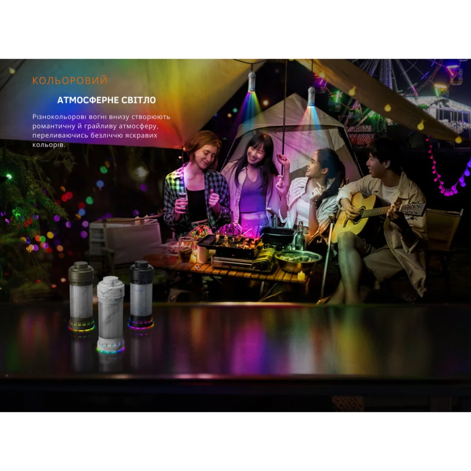 Модель укомплектована светодиодами COB, холодным белым диодом Redslight SC1818C и 12 диодами WS2812B-3535 – каждый со сроком службы не менее 50 тысяч часов. Разнообразие вариантов луча позволяет адаптировать свет под индивидуальные потребности: фонарь можно активировать в стандартном режиме освещения на 360° (цветовая температура 3000К) или с направленным вниз лучом (6500К), комбинировать эти режимы для достижения максимальной освещенности или включать цветную подсветку. или на природе.