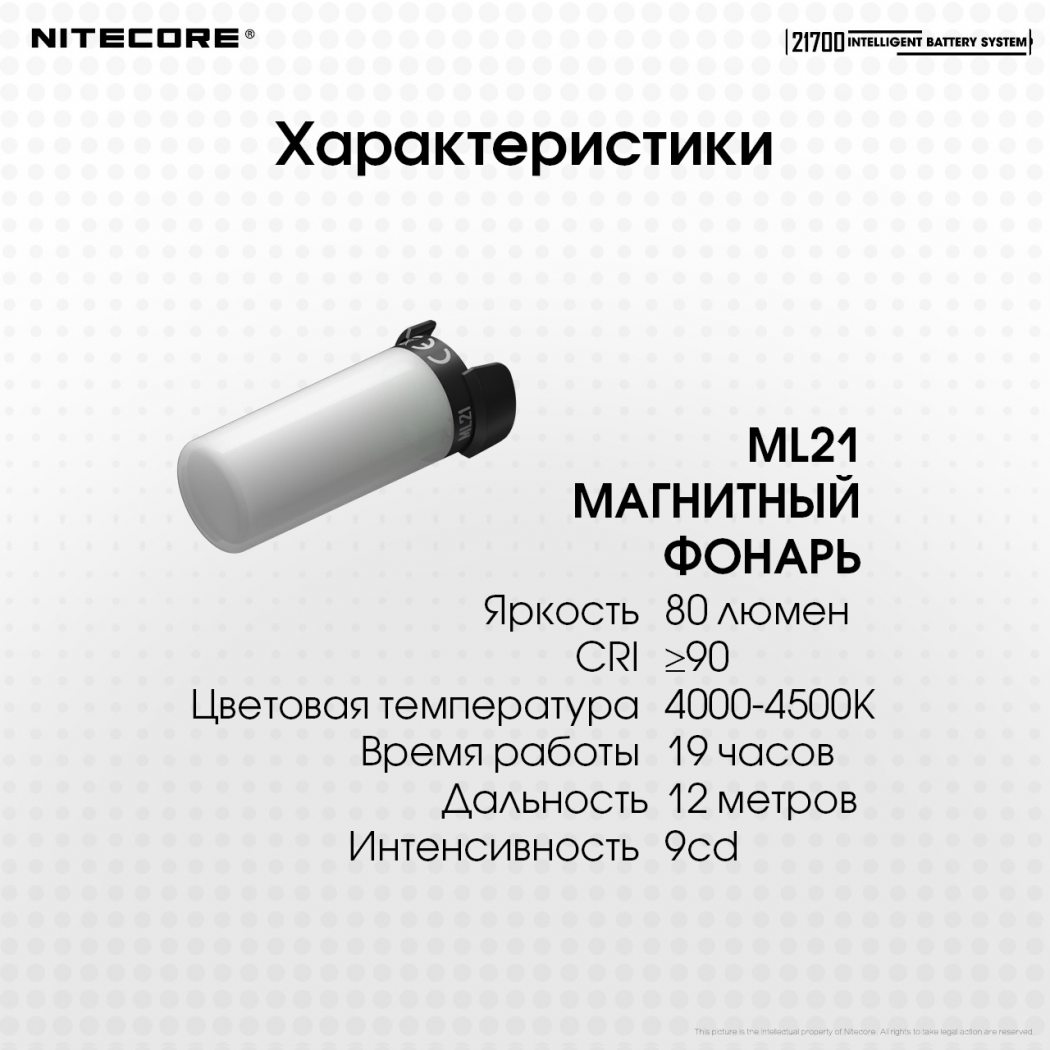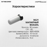 Фонарь магнитный Nitecore ML21 (80 люмен, 1 режим, 1×21700)