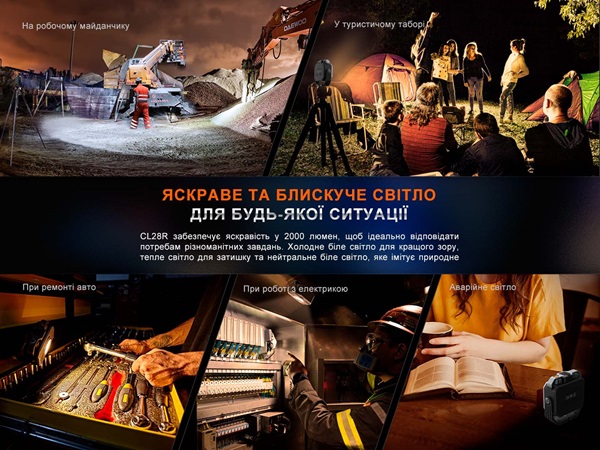 Fenix ​​CL28R – функциональная модель, которую можно использовать для освещения улицы, производственного помещения или домашней комнаты при отсутствии электроэнергии. Устройство имеет повышенную мощность, достигающую рекордных 2000 люмен, но главное преимущество – автономность, равная 45 дням непрерывной работы в минимальном режиме.