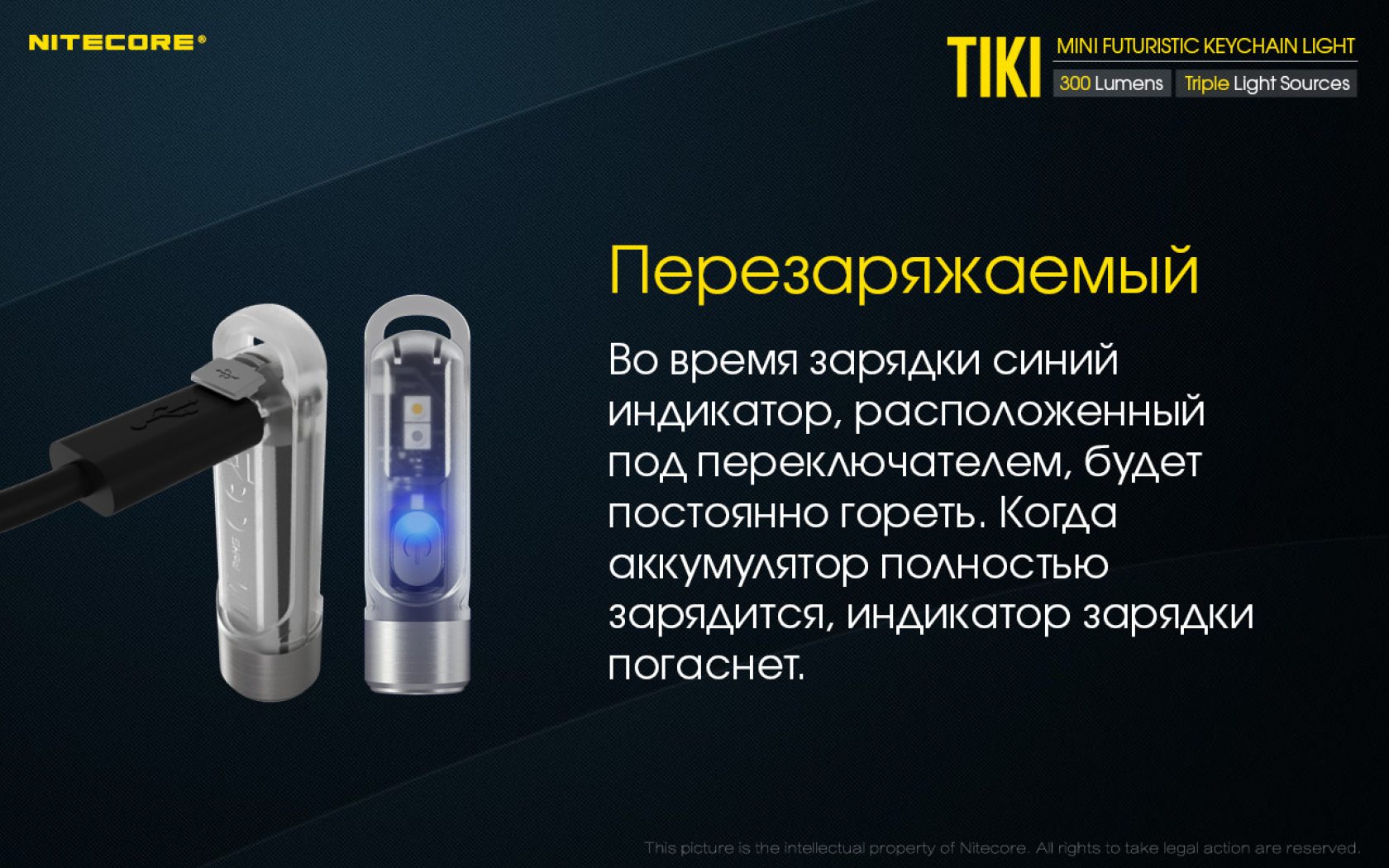 Фонарь наключный Nitecore TIKI LE (Osram P8+Red+Blue LED, 300 люмен, 7 режимов, USB), черный