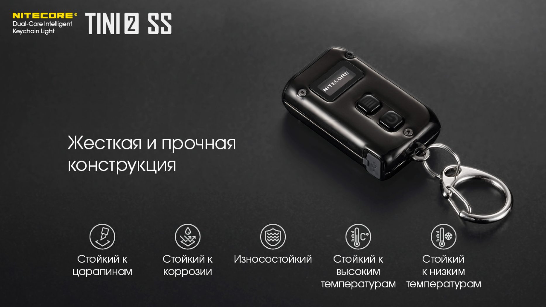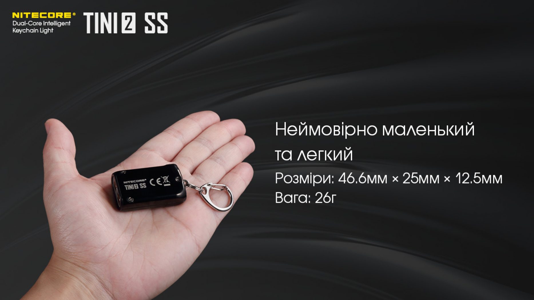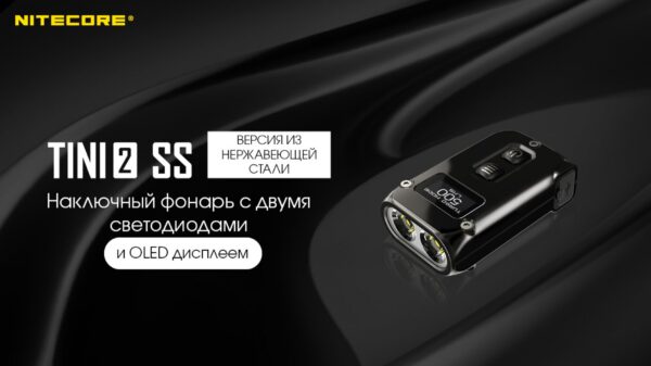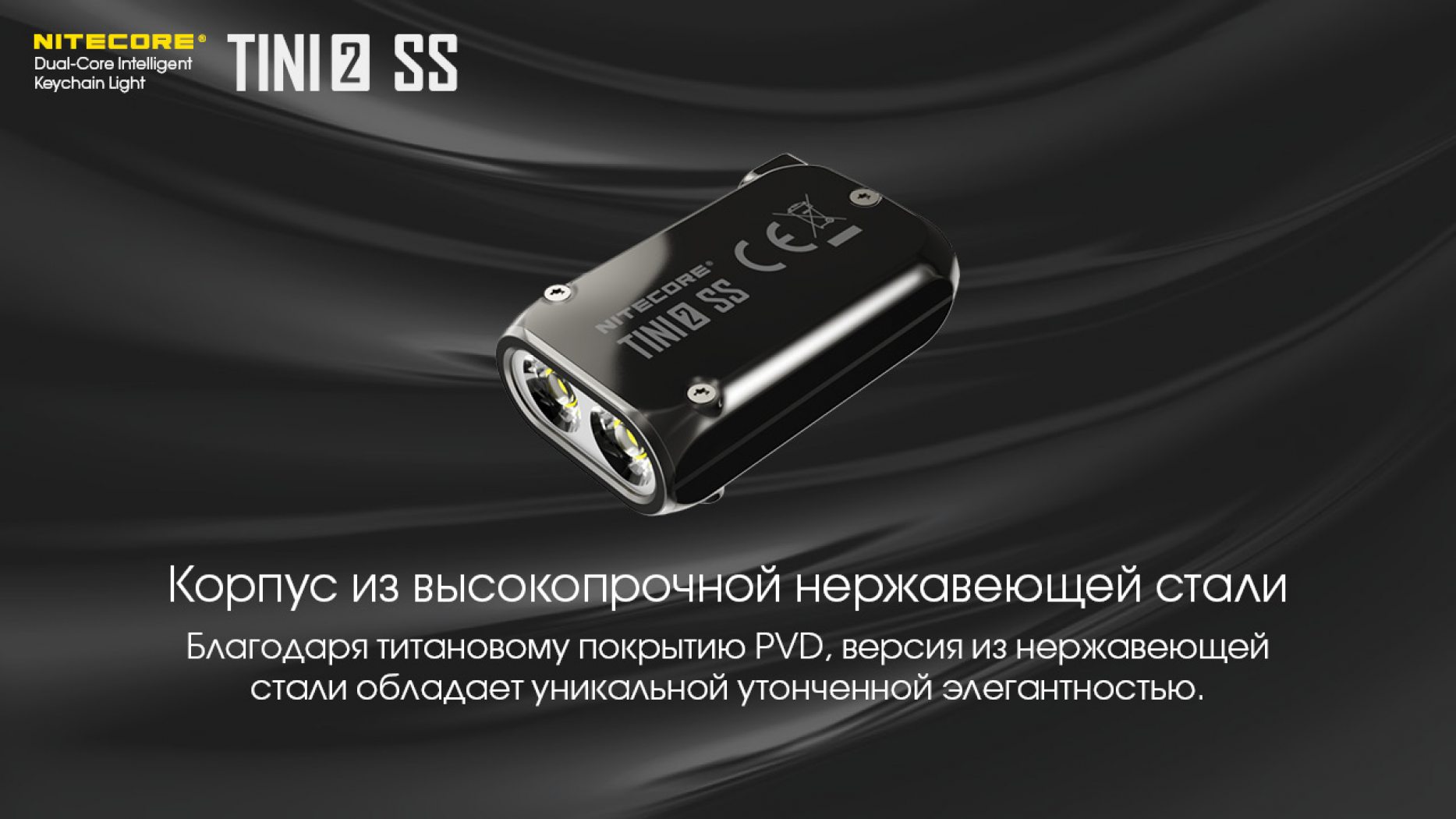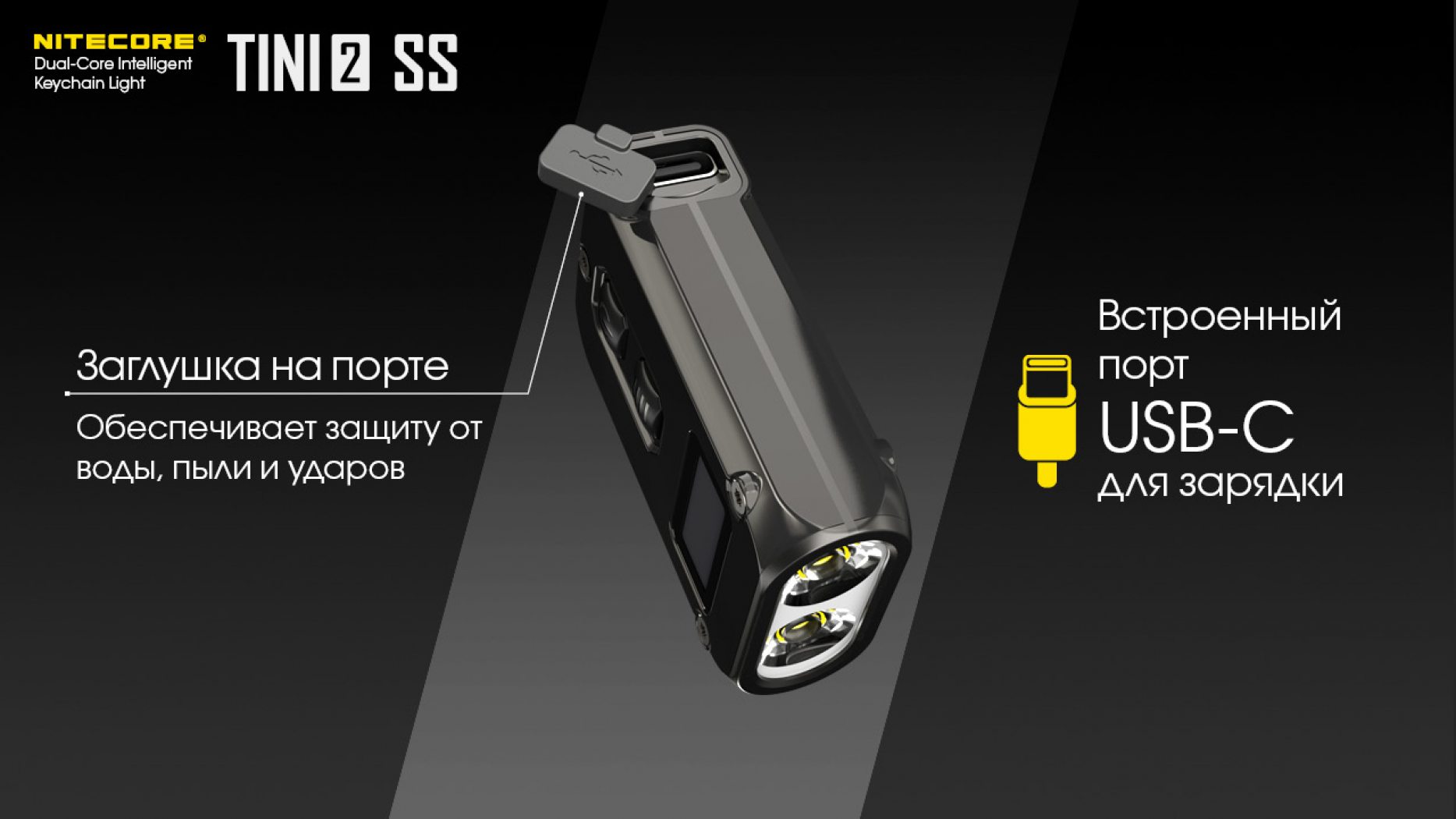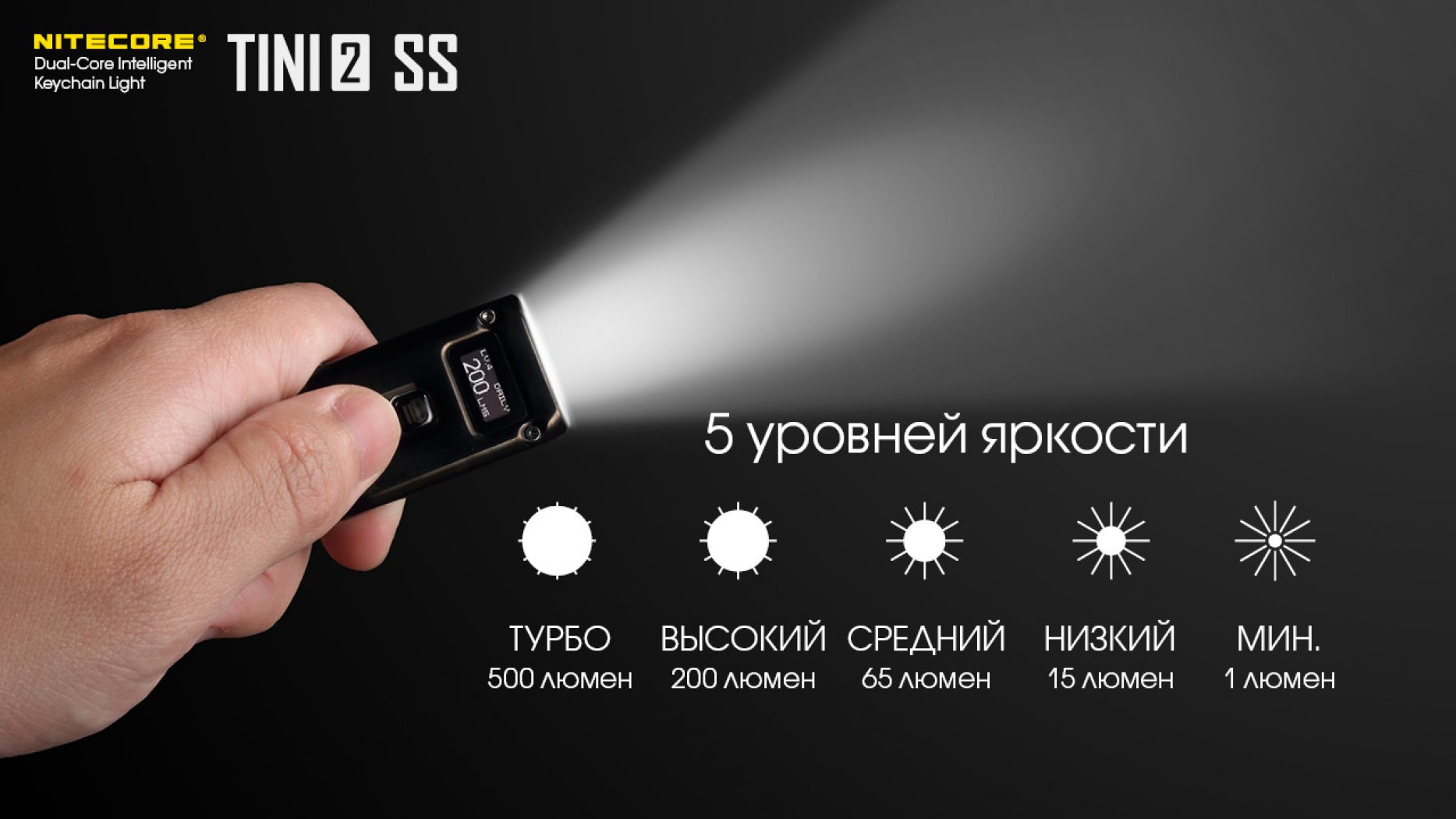 Фонарь наключный Nitecore TINI 2 SS (2xOSRAM P8, 500 люмен, 5 режимов, USB Type-C), черная смола
