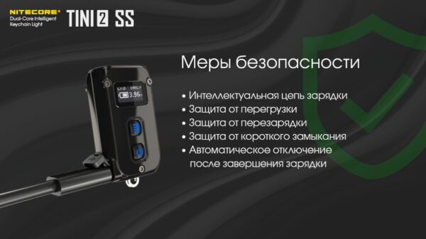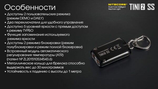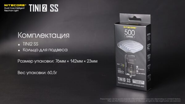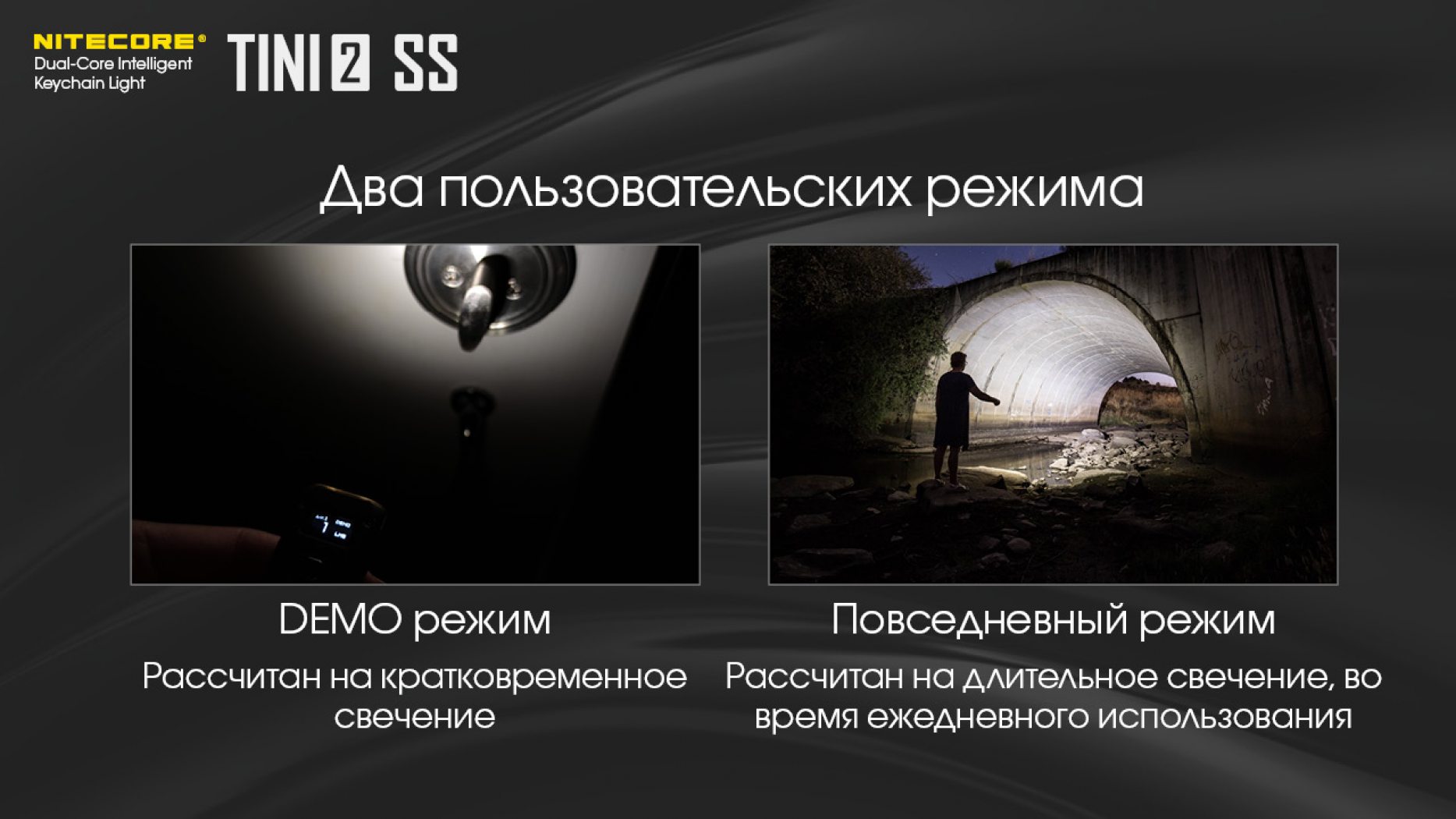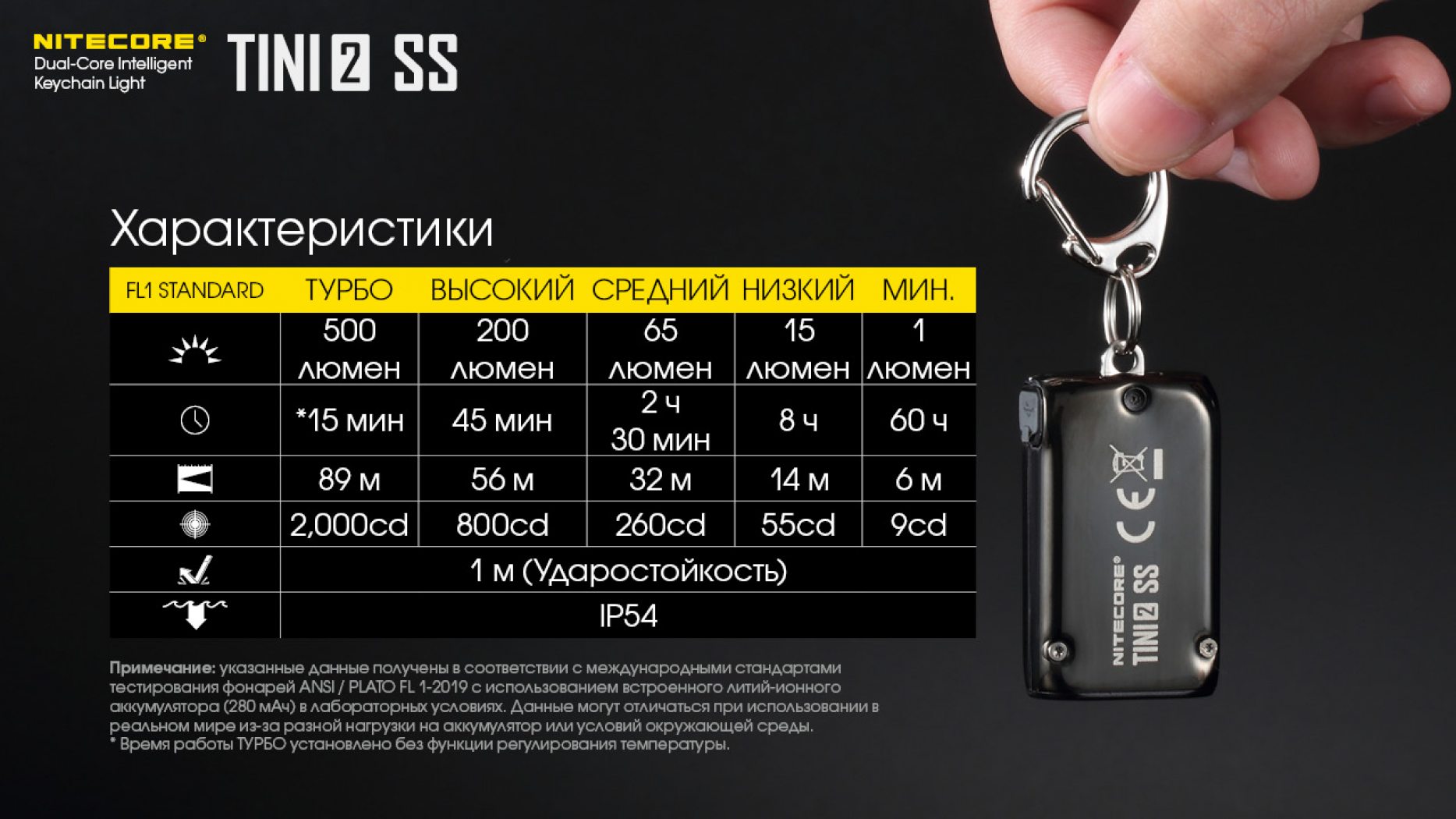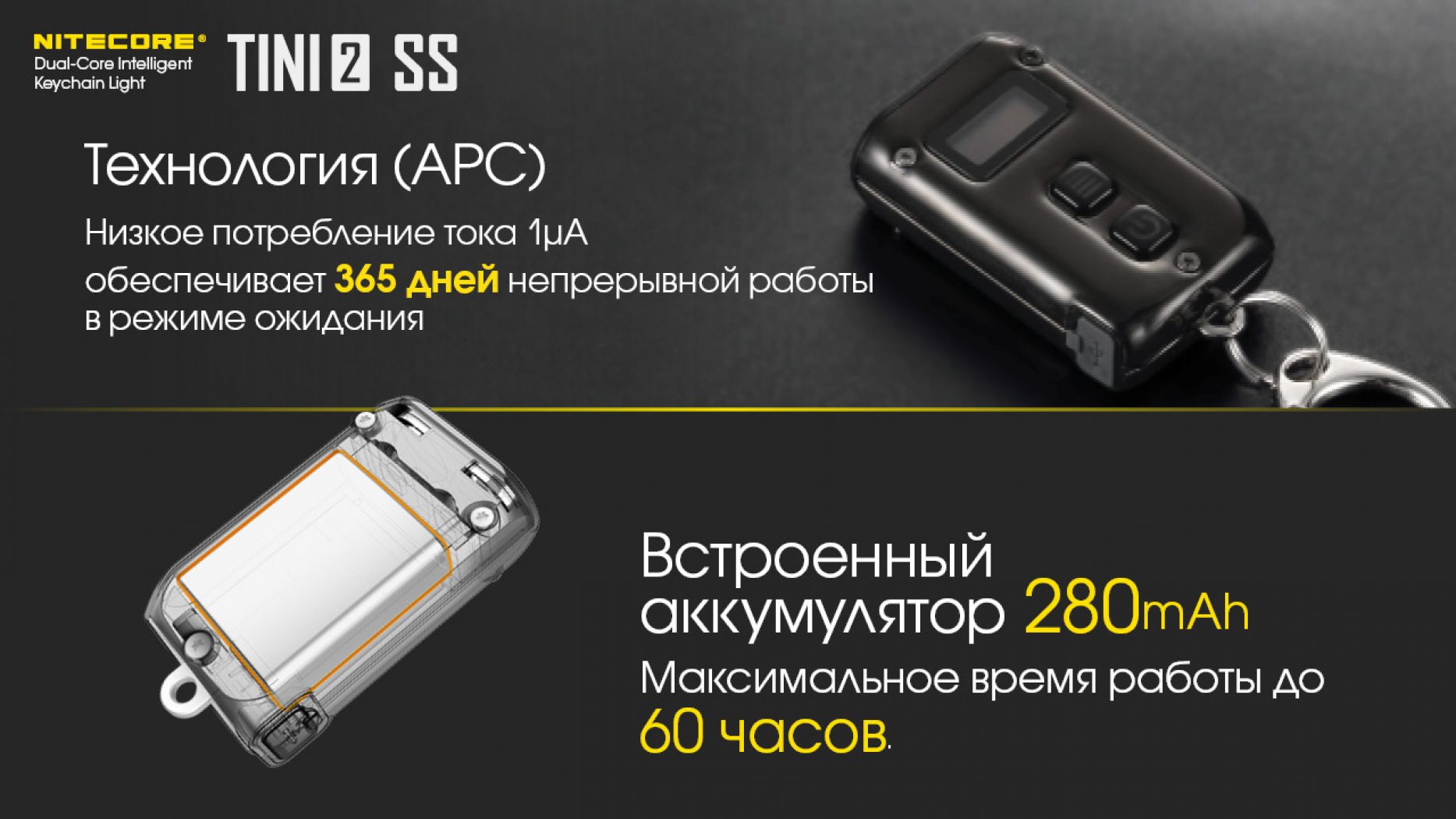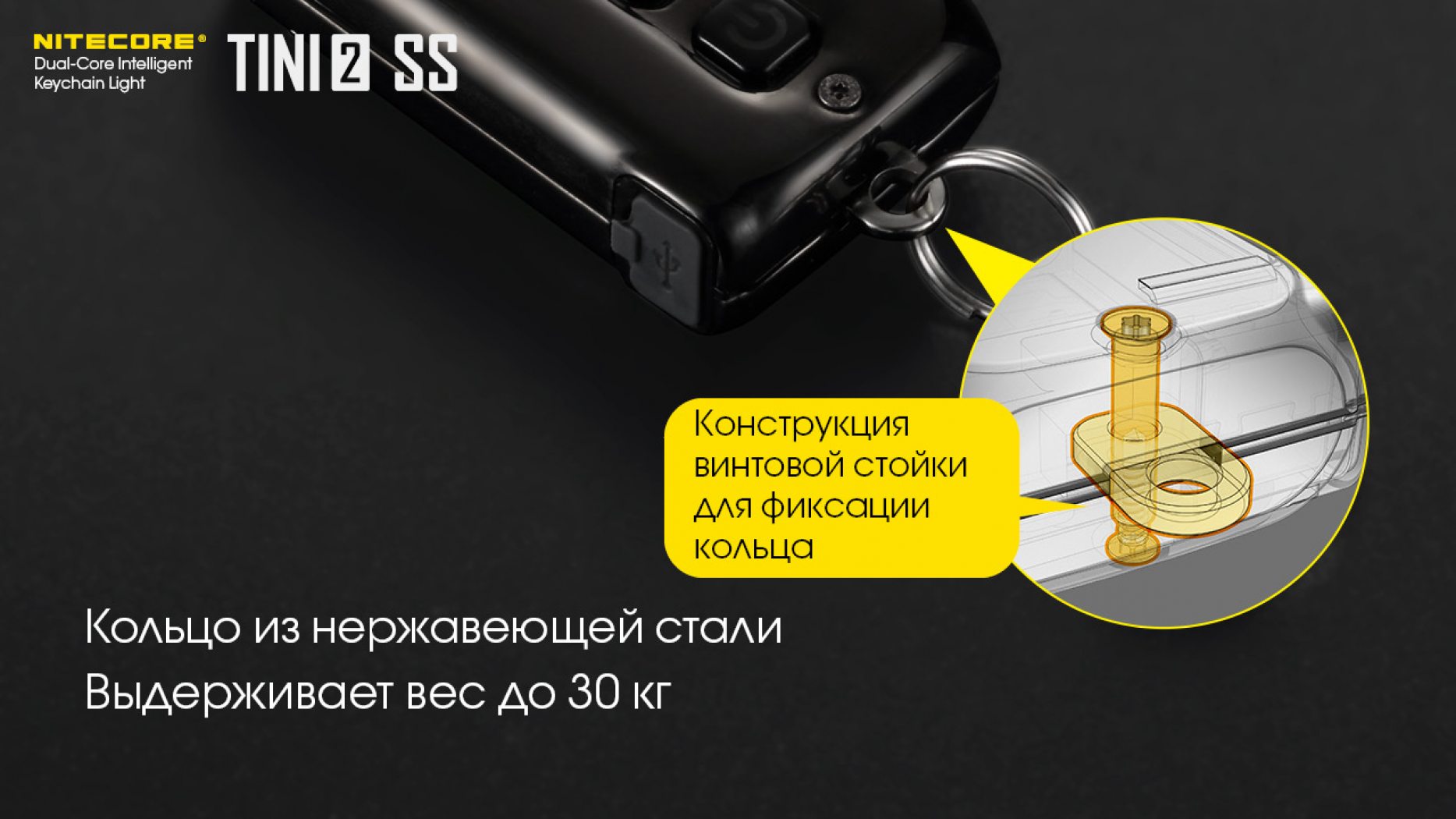 Фонарь наключный Nitecore TINI 2 SS (2xOSRAM P8, 500 люмен, 5 режимов, USB Type-C), черная смола