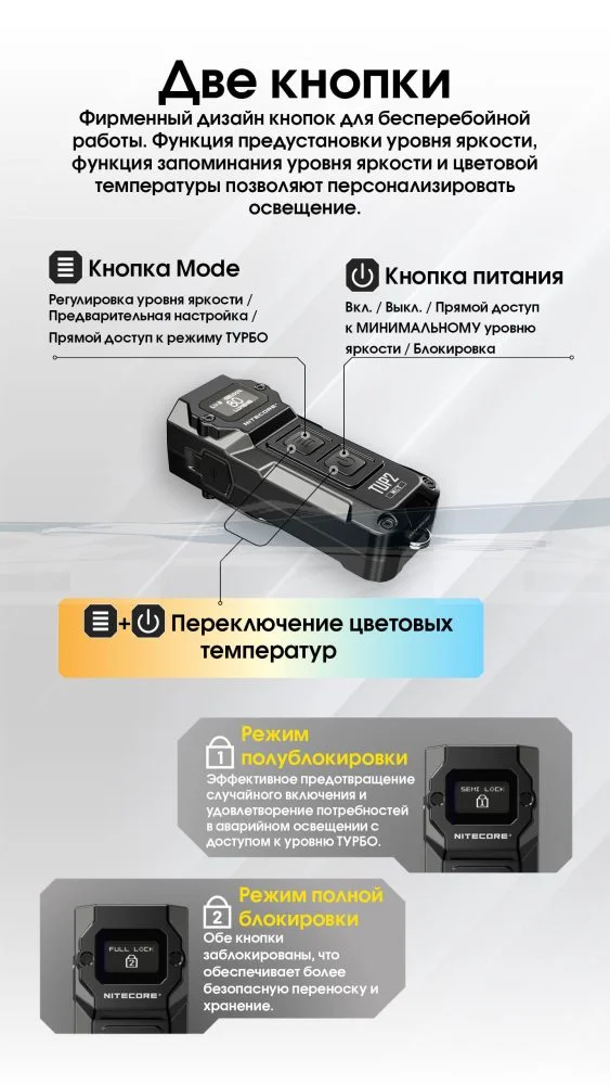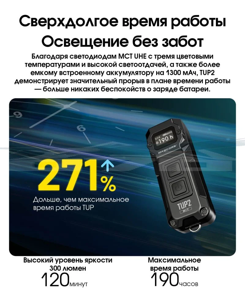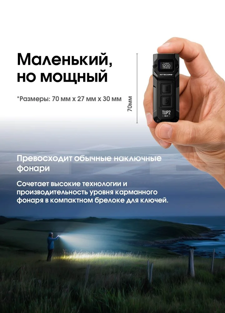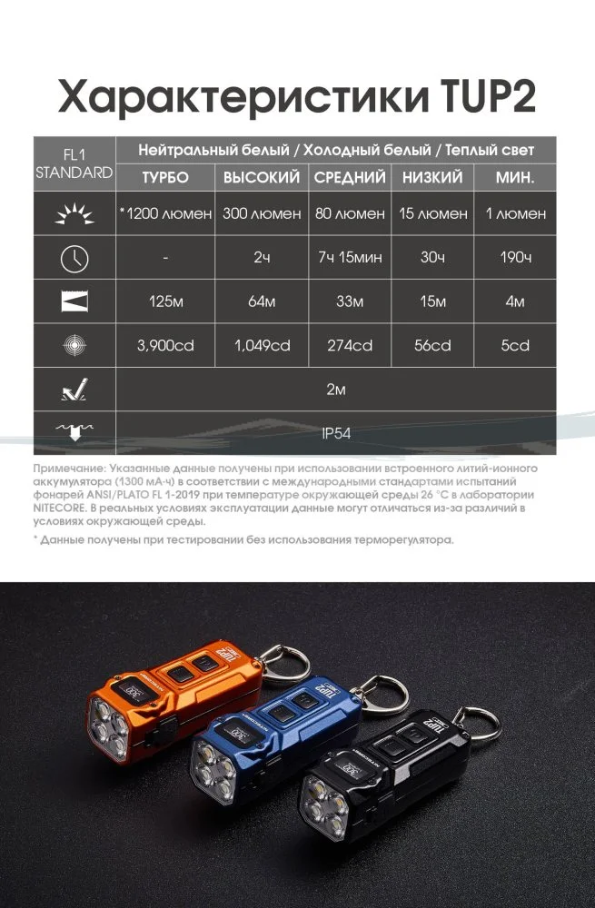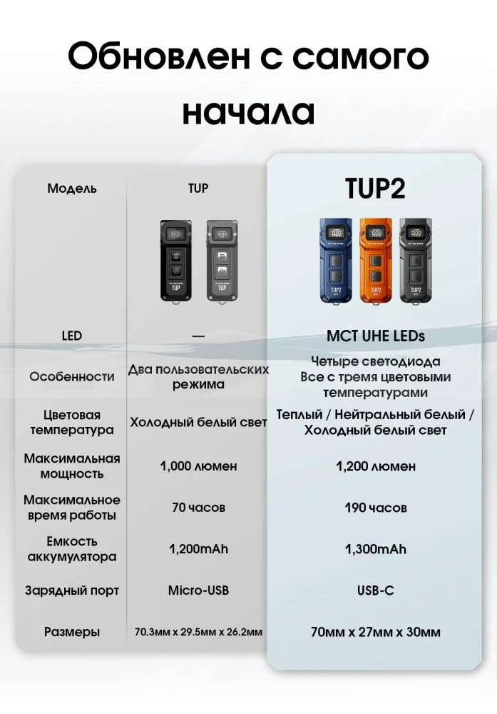 Фонарь наключный Nitecore TUP2 MCT (4xUHE LED, 1200 люмен, 5 режимов, USB-C), синий