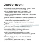 - Дополнительно: Цифровая стабилизация тока, Защита от перезаряда, Защита от переразряда, Защита от короткого замыкания, Встроенный порт для зарядки