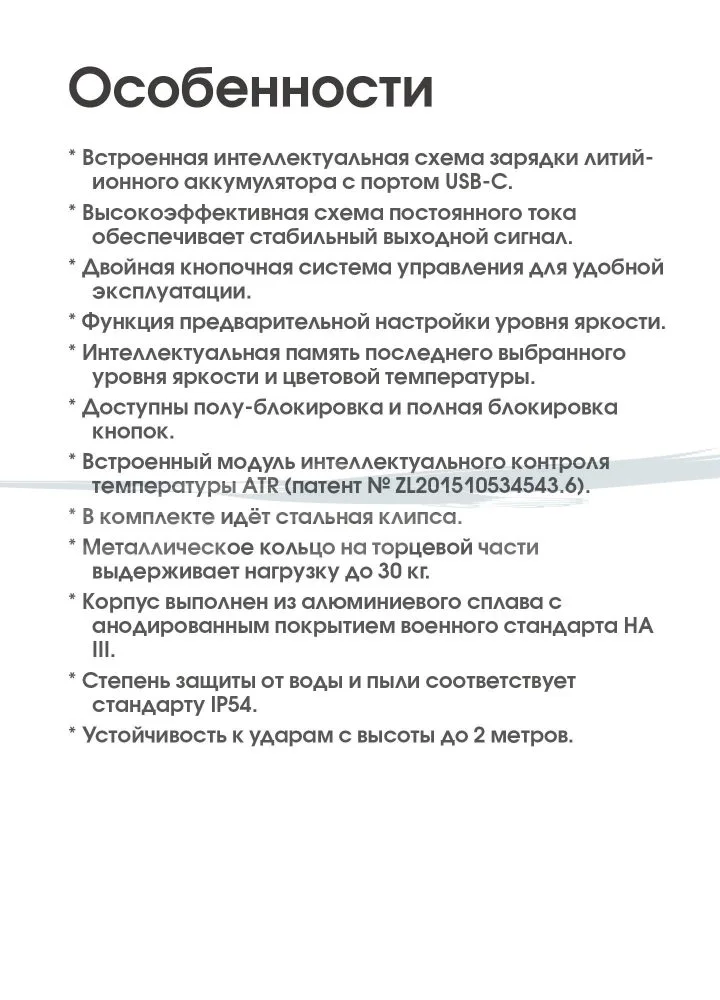- Комплектация: Фонарь, кольцо для подвеса, кабель для зарядки, фирменная коробка