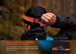 К комплекту с фонарем и аккумулятором добавлено перфорированное оголовье. Его ширина составляет 36 миллиметров. Дизайн резинки дополняют не только светоотражающие вставки, но и запатентованный механизм изменения длины, управляемый взаимодействием с вращающимся клапаном. Регулировка длины налобной крепи осуществляется одним движением руки во время ношения фонаря, что особенно удобно во время тренировки.