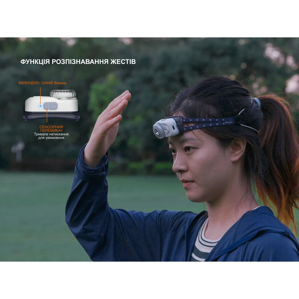 Для быстрого включения и выключения предусмотрена функция управления жестами . Фонарь реагирует на взмах ладони перед линзой, позволяя работать со светом без взаимодействия с переключателями.