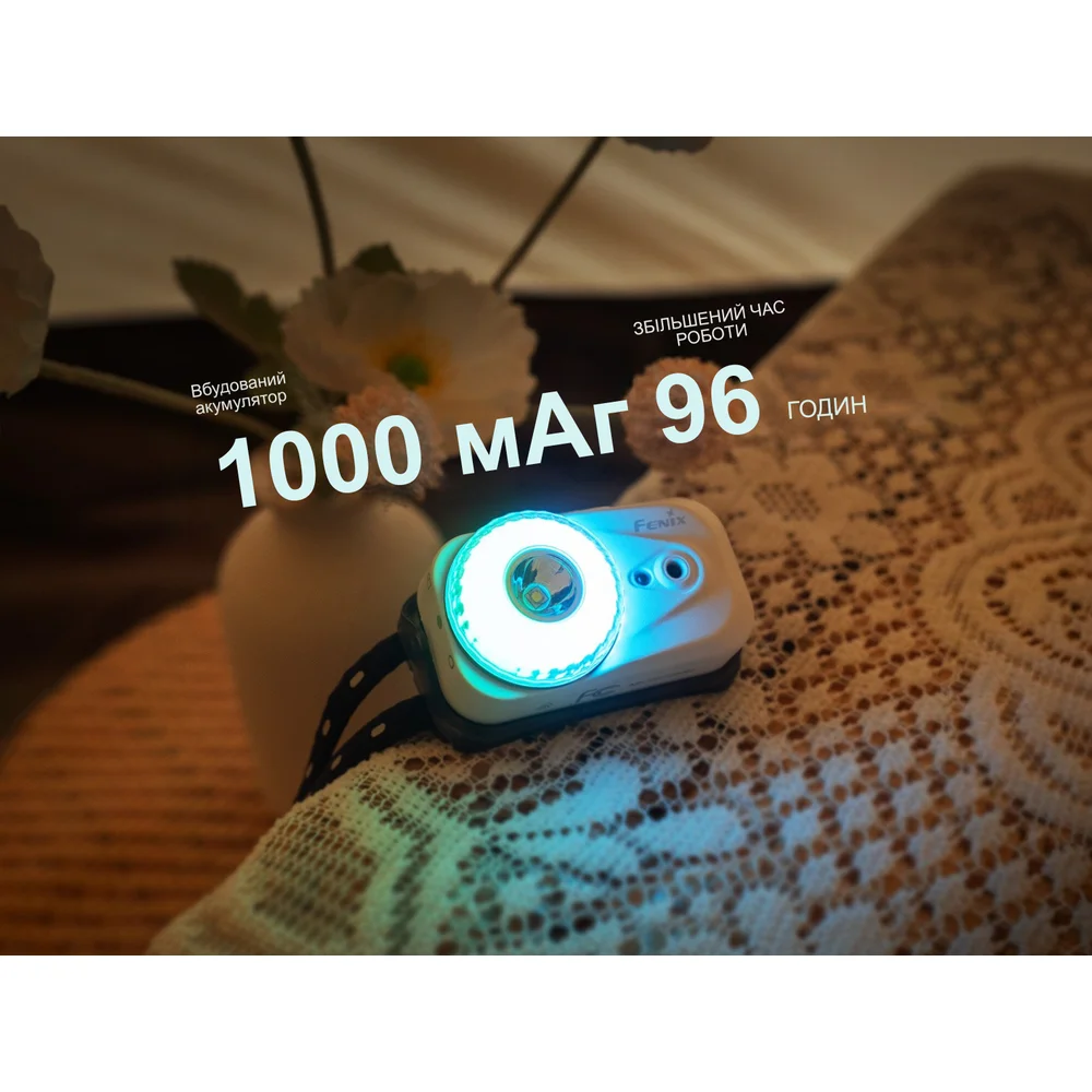 Фонарь питается от литий-ионного аккумулятора 1000 мА·ч . Рабочее напряжение составляет 3.0–4.2 В с допустимым пределом 2.8–4.2 В, что обеспечивает стабильную работу устройства на всех режимах. Индикатор уровня заряда сообщает о состоянии аккумулятора и низком заряде.