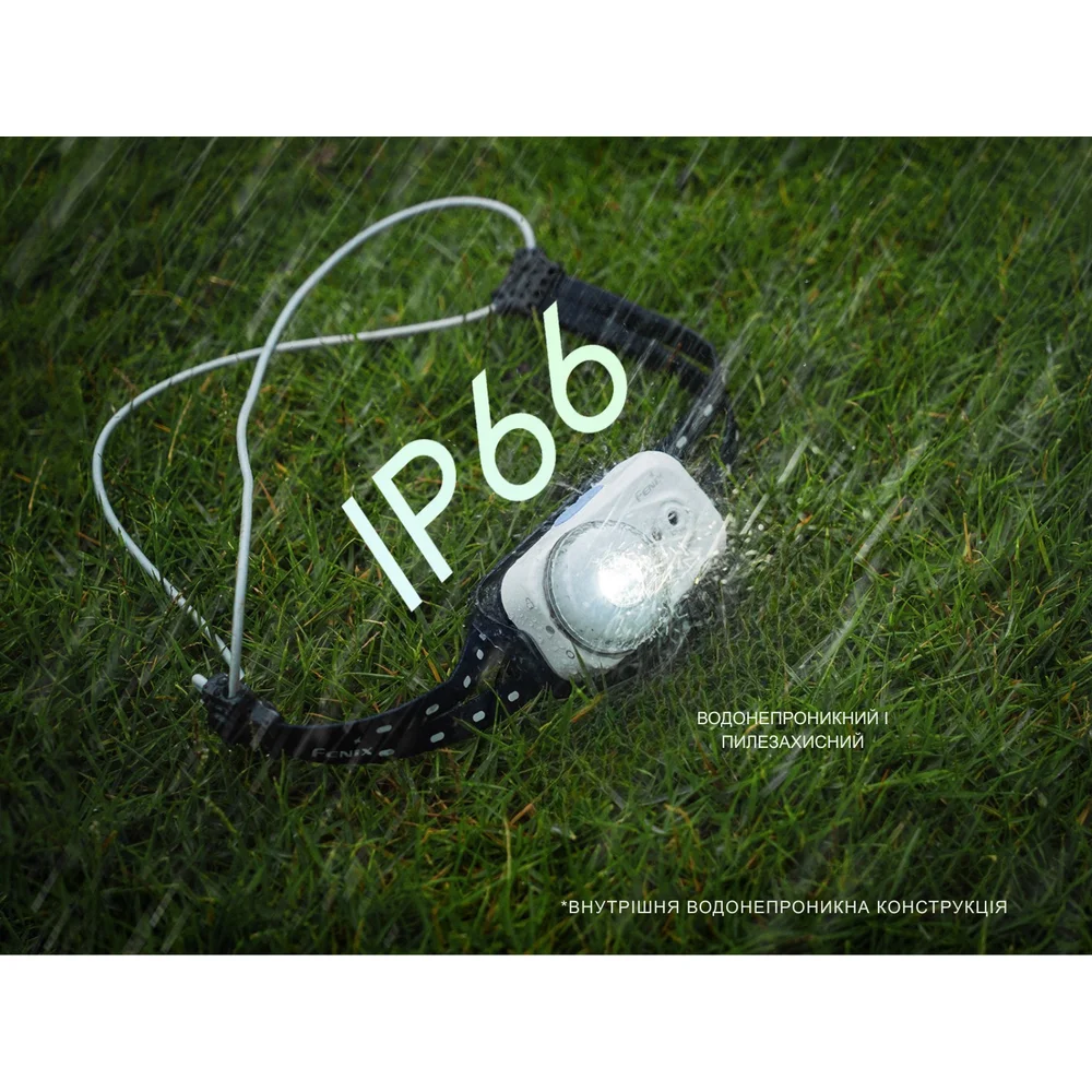 Корпус выполнен из пластика с поликарбонатной линзой, что делает конструкцию легкой (лишь 65 г с аккумулятором) и одновременно устойчивой к повседневным нагрузкам, в частности к падению с высоты 1 м. Герметичность соответствует классу IP66 : оболочка полностью пылезащищена и выдерживает. Зарядный порт USB-C имеет внутреннюю влагозащиту.