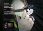 Fenix ​​HM61R V2.0 идет в комплекте с фирменной резинкой, что обеспечивает комфортное ношение модели на голове. Установить и снять фонарь теперь проще. Он фиксируется на резинке не за счет пластиковых держателей, используемых в большинстве креплений для налобных фонарей, а благодаря стальной клипсе. Это позволяет ускорить процесс фиксации или снятия фонаря с крепежа, занимающего всего несколько секунд.
