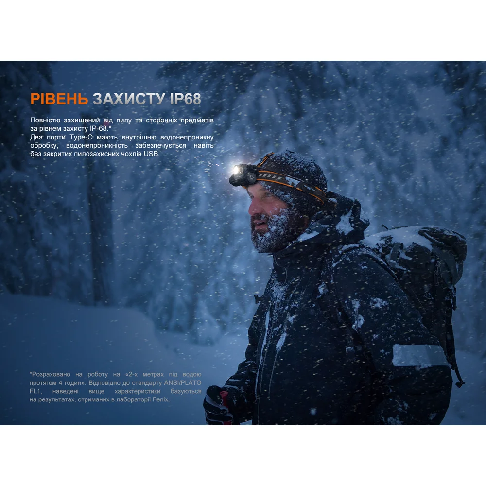 Фонарь Fenix HM75R SE поставляется с li-ion аккумулятором ARB-L18-3400, не имеющим «эффекта памяти» и стабильно питающим осветительное устройство даже в случае температурных перепадов. Элемент питания заряжается через порт USB Type-C, встроенный в боковую сторону корпуса фонаря и защищенный заглушкой. Цветной индикатор позволяет отслеживать количество заряда.