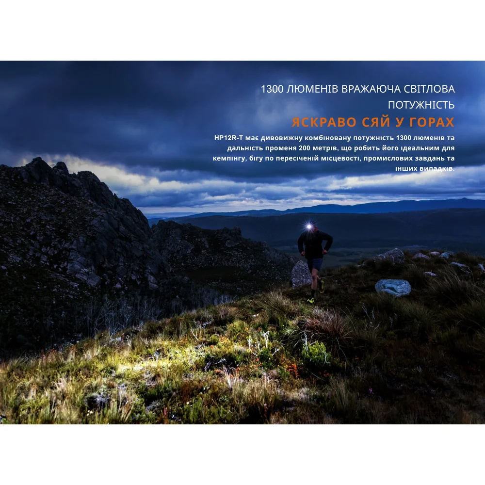 Налобный фонарь Fenix ​​HP12R-T сочетает свет высокой яркости до 1300 люменов , точную настройку светового потока и продуманную конструкцию для комфортного использования в движении. Это профессиональная модель, разработанная для бегунов, трейлереров, туристов, строителей и специалистов, работающих в условиях плохой видимости.