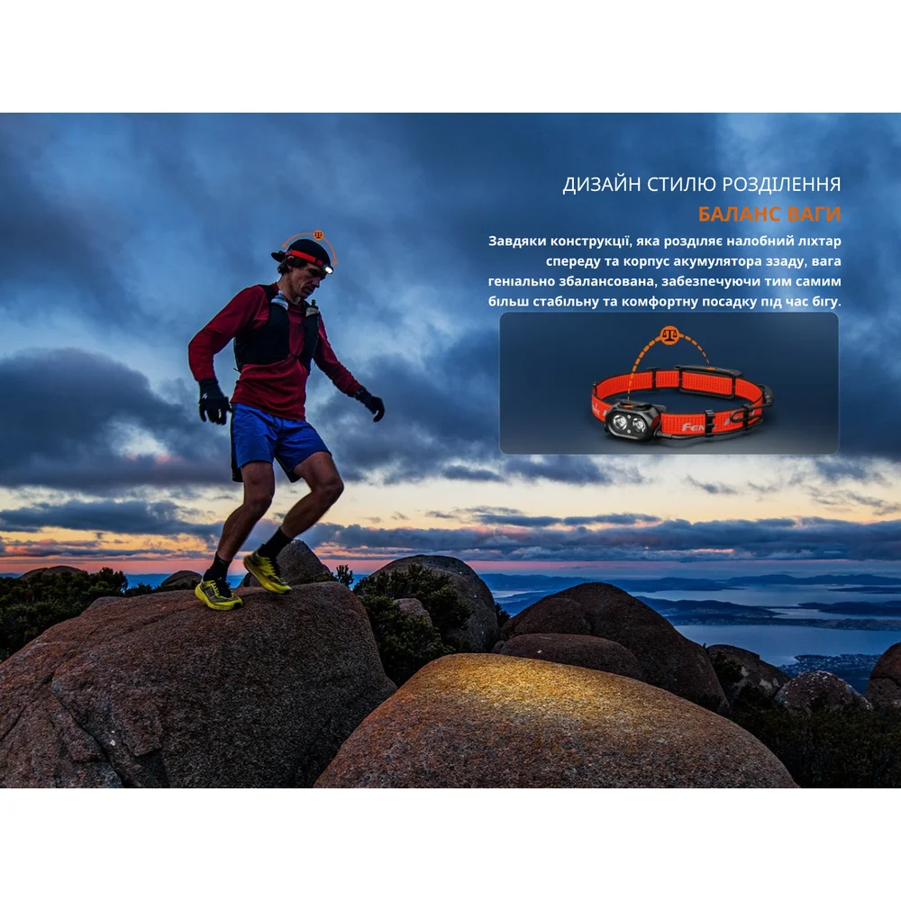 Главная особенность Fenix ​​HP12R-T – батарейный блок, вынесенный на заднюю часть налобной крепи . Такое решение позволяет сбалансировать вес между корпусом фонаря и батарейным отсеком, предотвращая скольжение конструкции на голове во время активного движения.