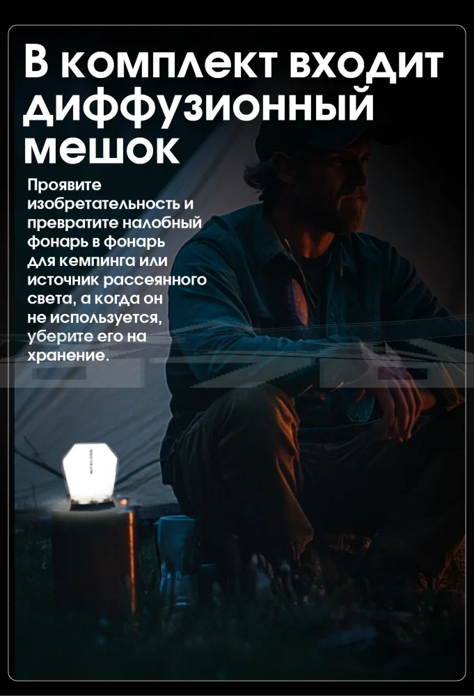 • Комплектация: Фонарь, налобная повязка, батарейка АА, клипса, диффузионный мешок, фирменная коробка