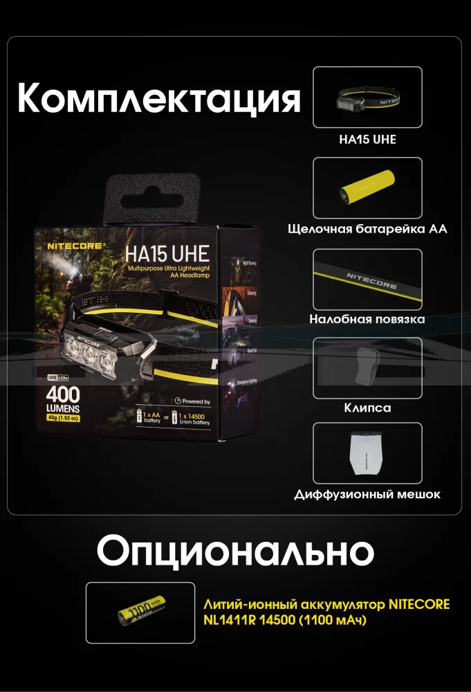 Nitecore HA15 UHE – это современное решение для тех, кто ищет мощный, удобный и универсальный фонарь для активного образа жизни.