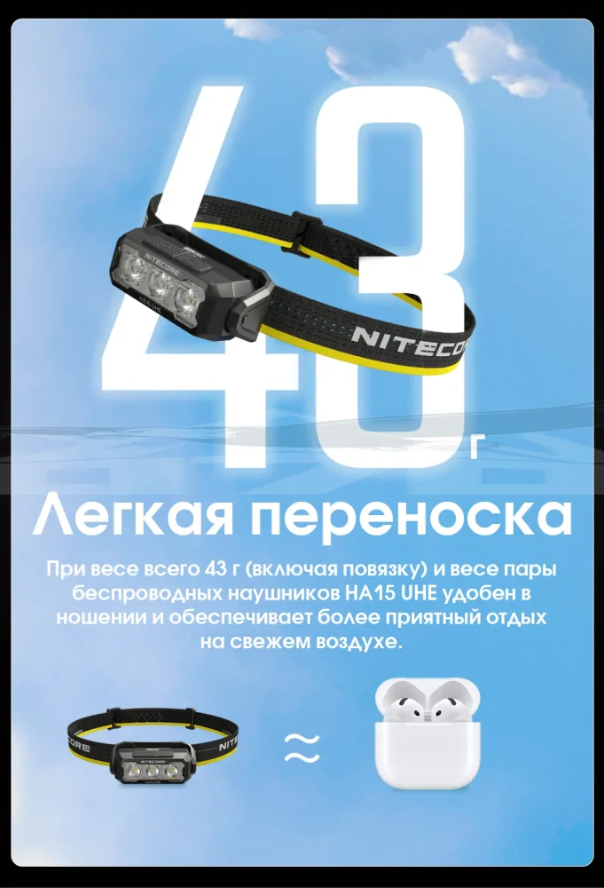 Сочетая легкость и компактность, Nitecore HA15 UHE весит совсем немного, что делает его незаметным при длительном ношении. Несмотря на это, он способен выдавать мощное освещение, которое станет надежным помощником в самых разных ситуациях.