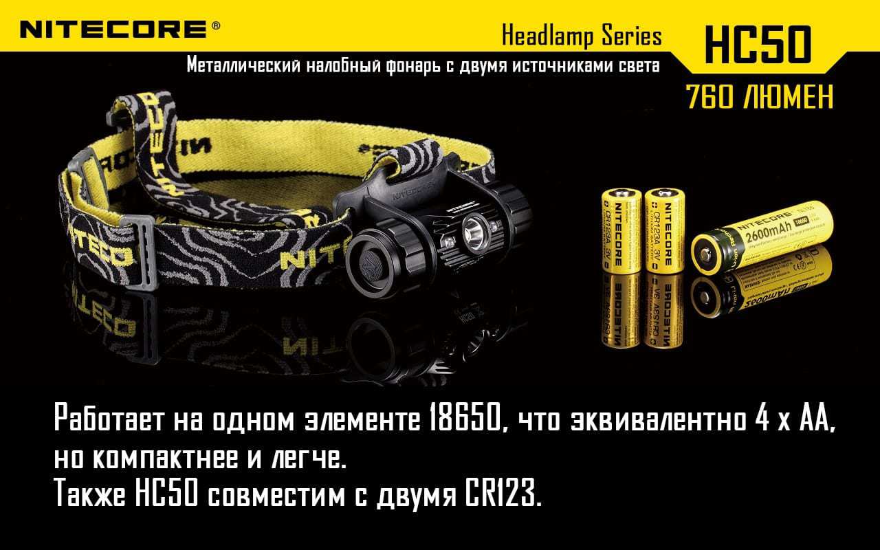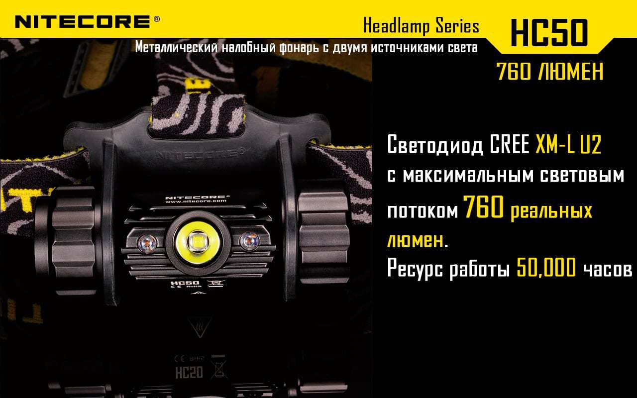 Налобный фонарь Nitecore HC50 (Cree XM-L2, 760 люмен, 10 режимов, 1×18650)