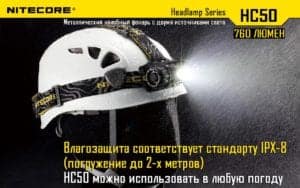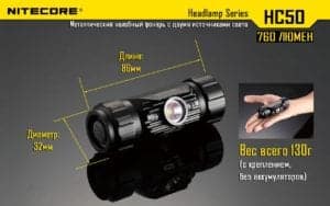 - Вес подобный наручным часам — всего 130 грамм — позволяет ощущать фонарь там, где это действительно необходимо, а так же это позволит Вам чувствовать себя максимально комфортно при использовании HC50 и экономить силы во время долгого пути.
