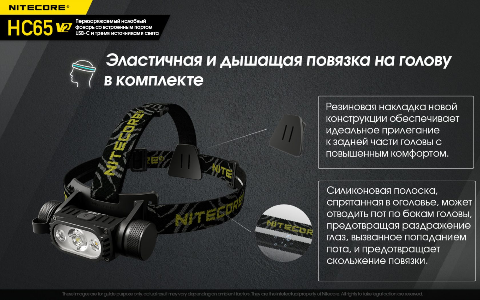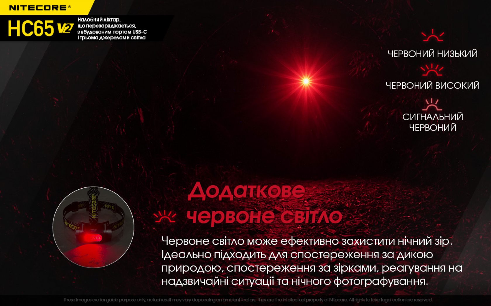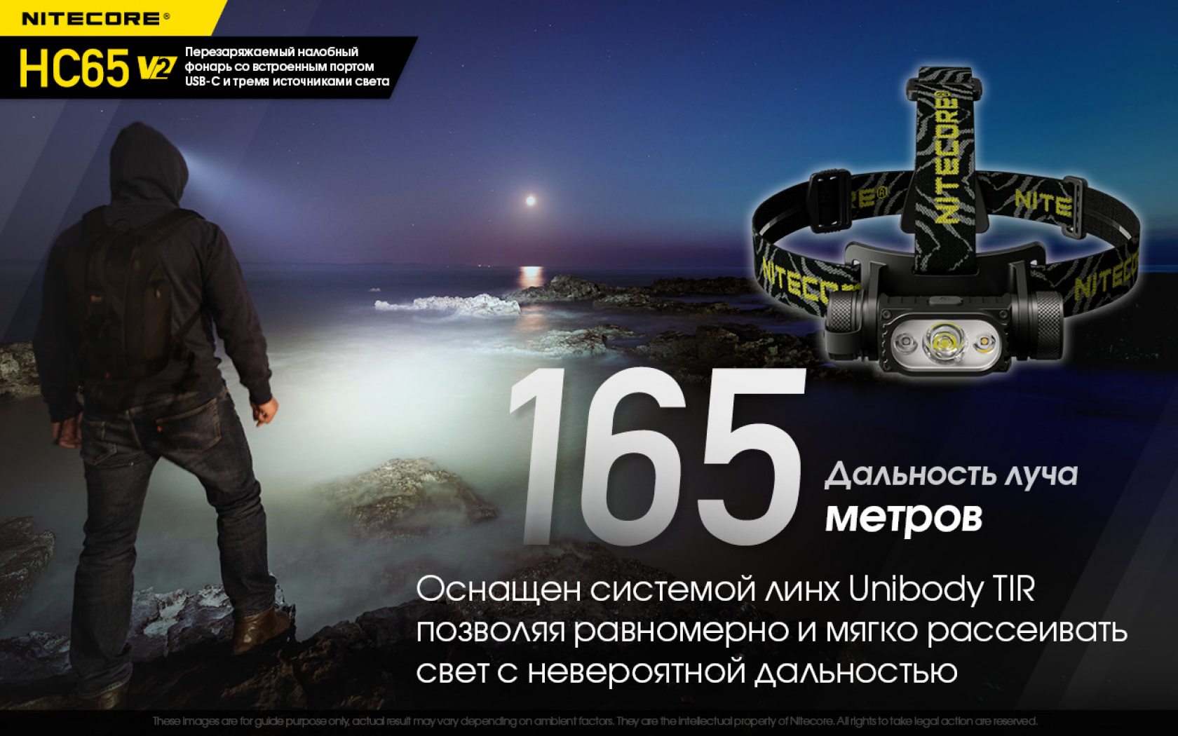 Фонарь налобный Nitecore HC65 V2 (Luminus LED+RED LED, 1750 люмен, 11 режимов, 1×18650, USB-C)