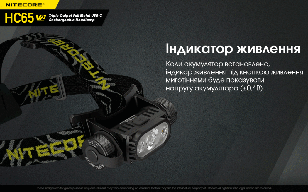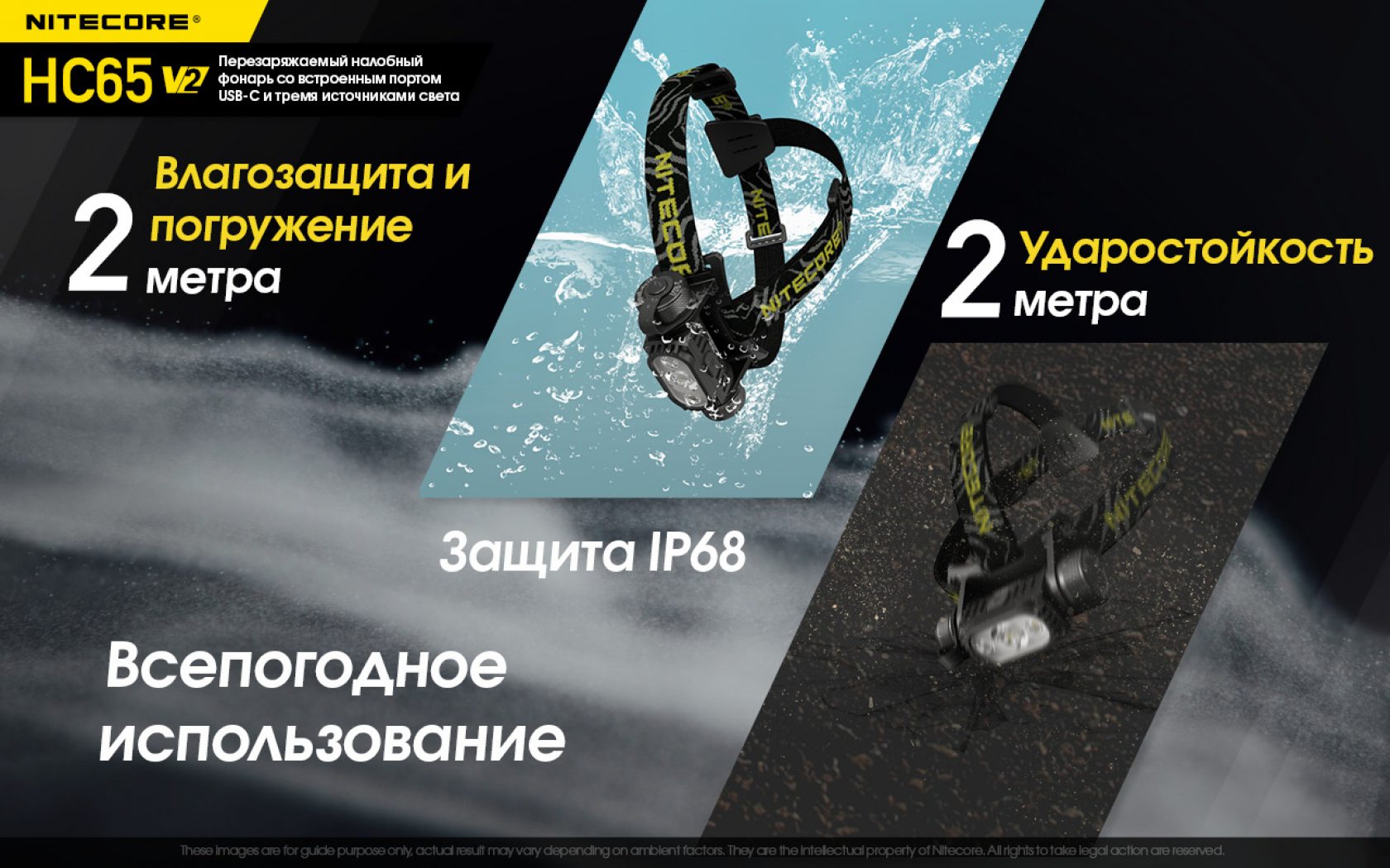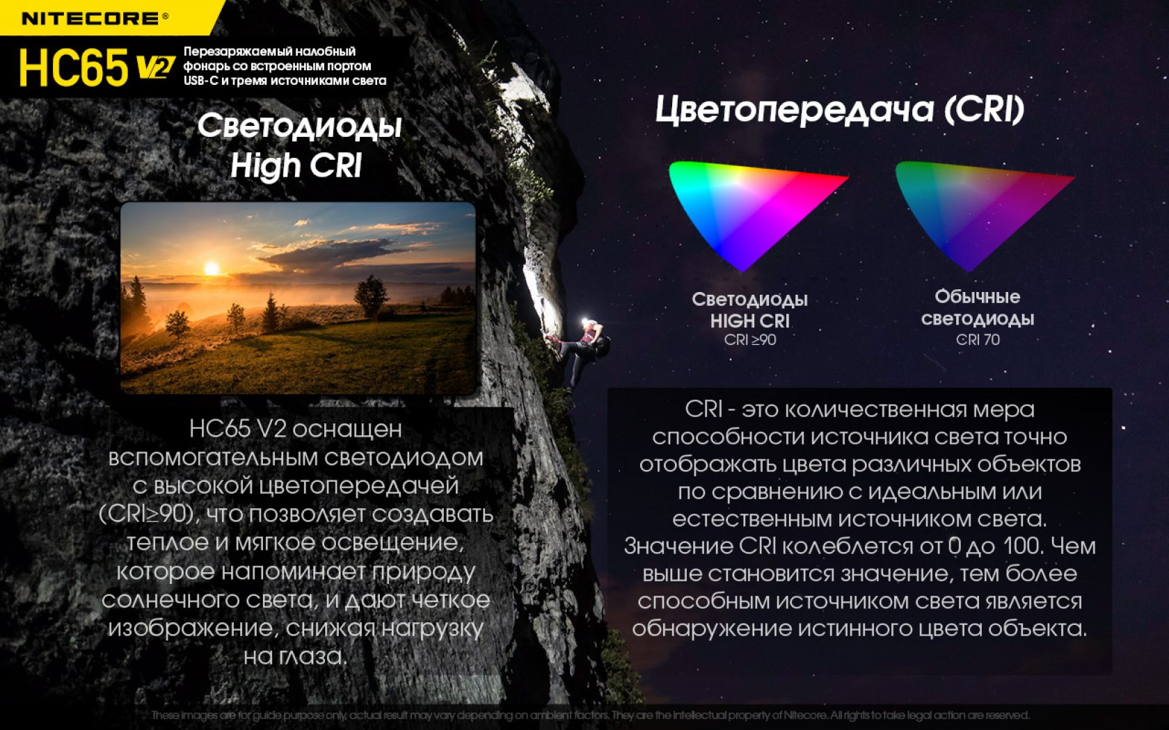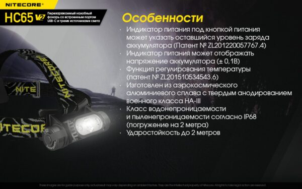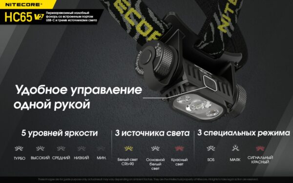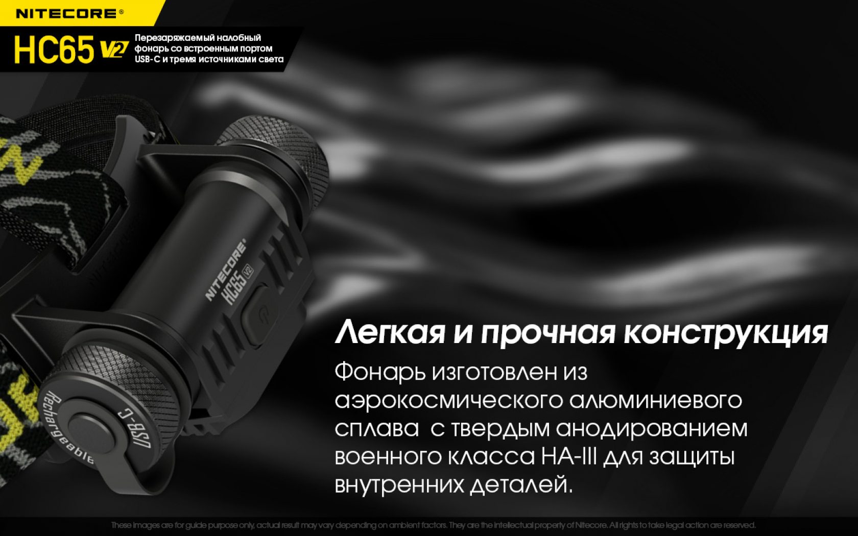 Фонарь налобный Nitecore HC65 V2 (Luminus LED+RED LED, 1750 люмен, 11 режимов, 1×18650, USB-C)