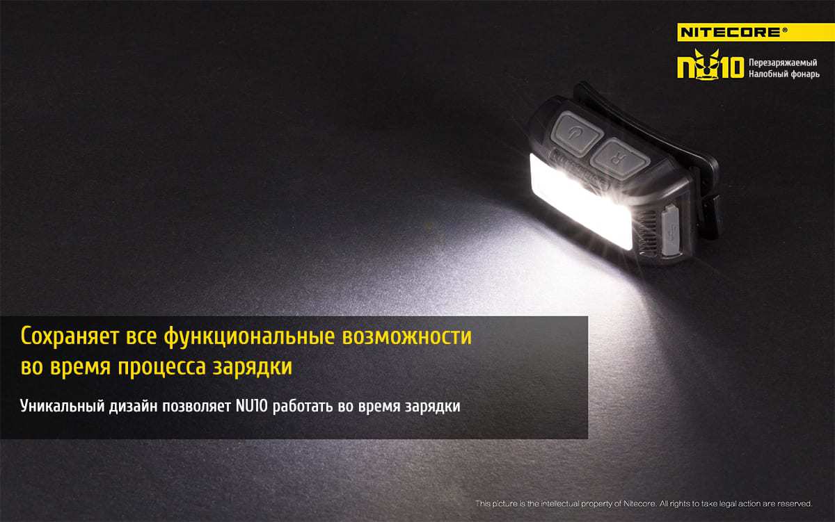 Одна из моделей фонарей Nitecore, которая заложила основу для начала разработки серии NU — это налобный фонарь NU10. Фонарь, имеет рабочее предназначение, так как основное и важное преимущество — широкий угол засветки. Тем самым расширяя сферу его использования для преодоления различных препятствий в рабочих обстановках.