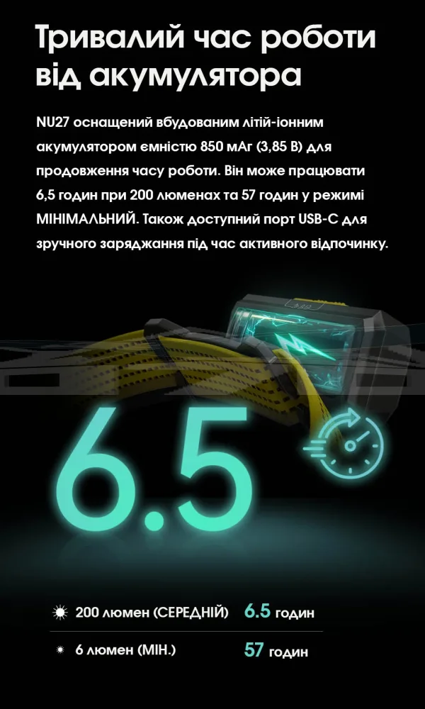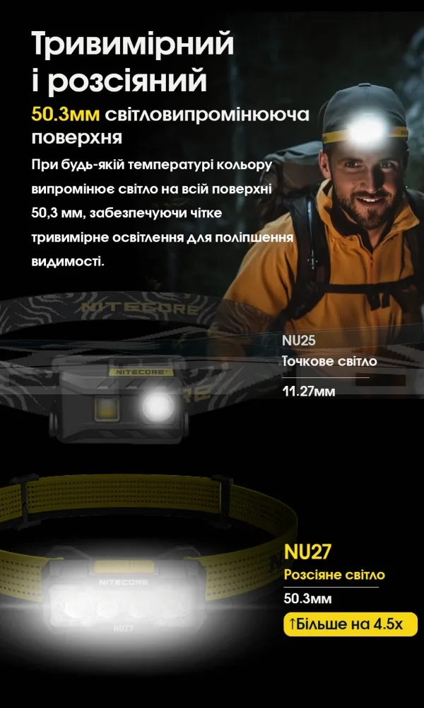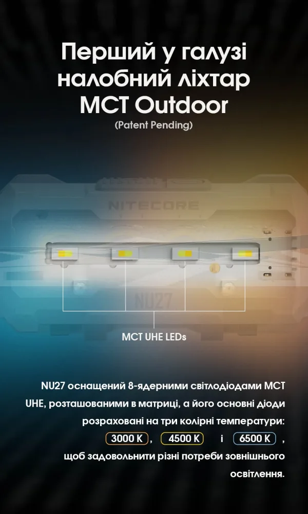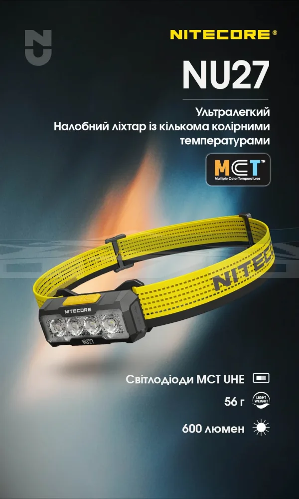 Фонарь налобный Nitecore NU27 MCT (2xNitelab UHE led, 600 люмен), черный