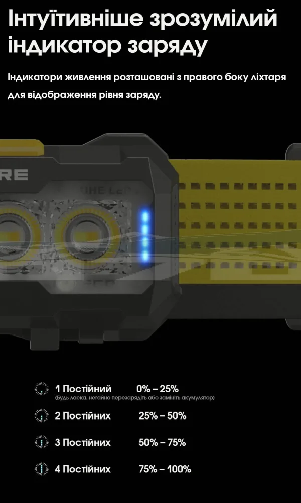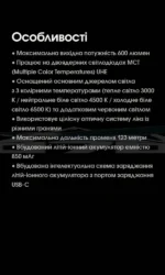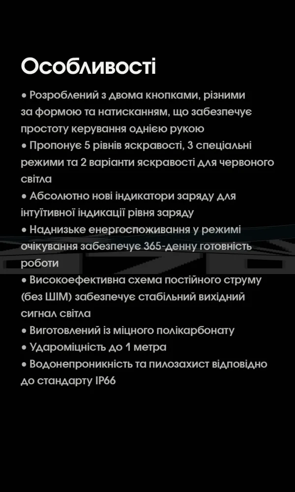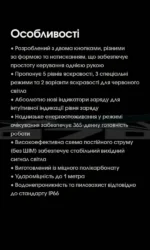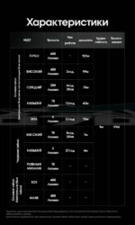 - Дополнительный режим: SOS, Маяк, Красный постоянный, Красный сигнальный