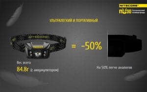 Лучшая модель налобного фонаря из серии «NU» — Nitecore NU30. Фонарь имеет своеобразную конструкцию корпуса вместе с непривычно расположенными в нем светодиодами и встроенным элементом питания. Данная фонарь идеально подходит для использования каждый день в темное время суток, для разнообразных кемпинговых и туристических походов.