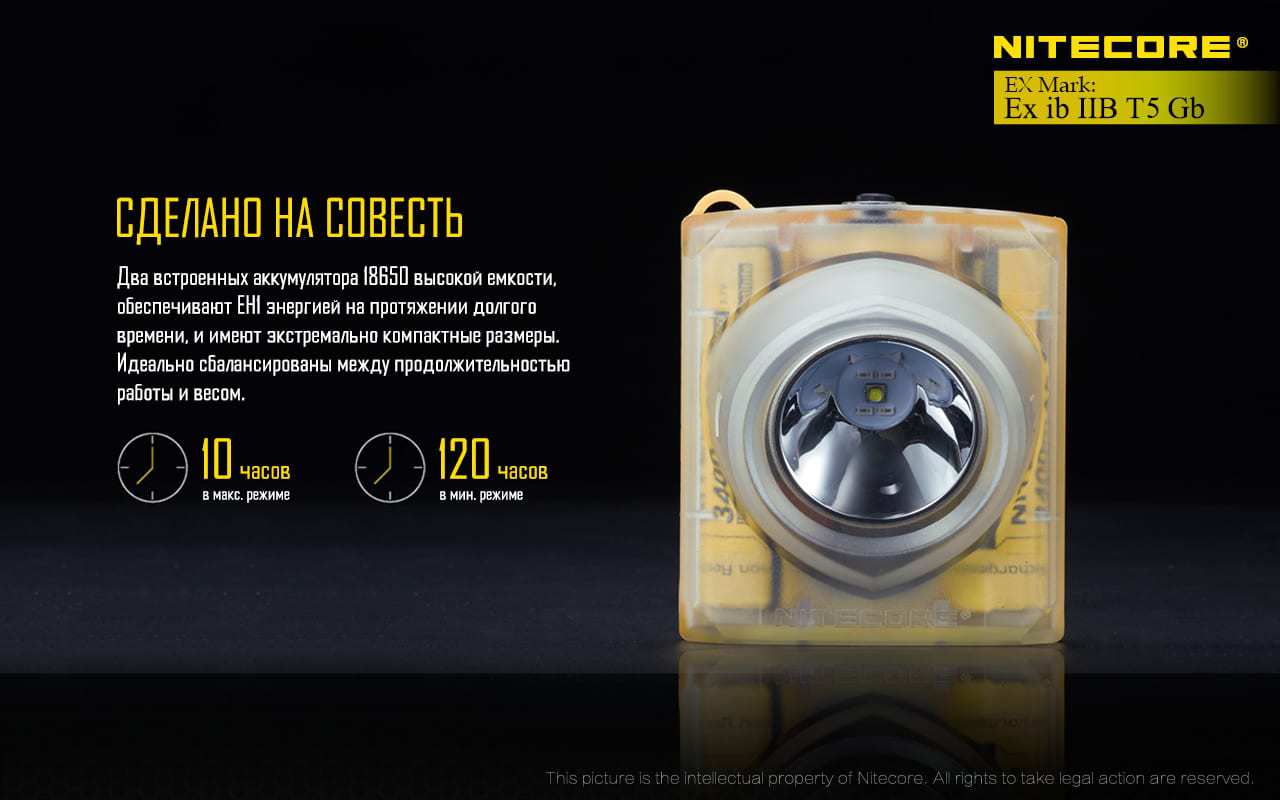 Налобный фонарь взрывозащищенный Nitecore EH1 (Сree XP-G2 S3, 260 люмен, 2×18650)